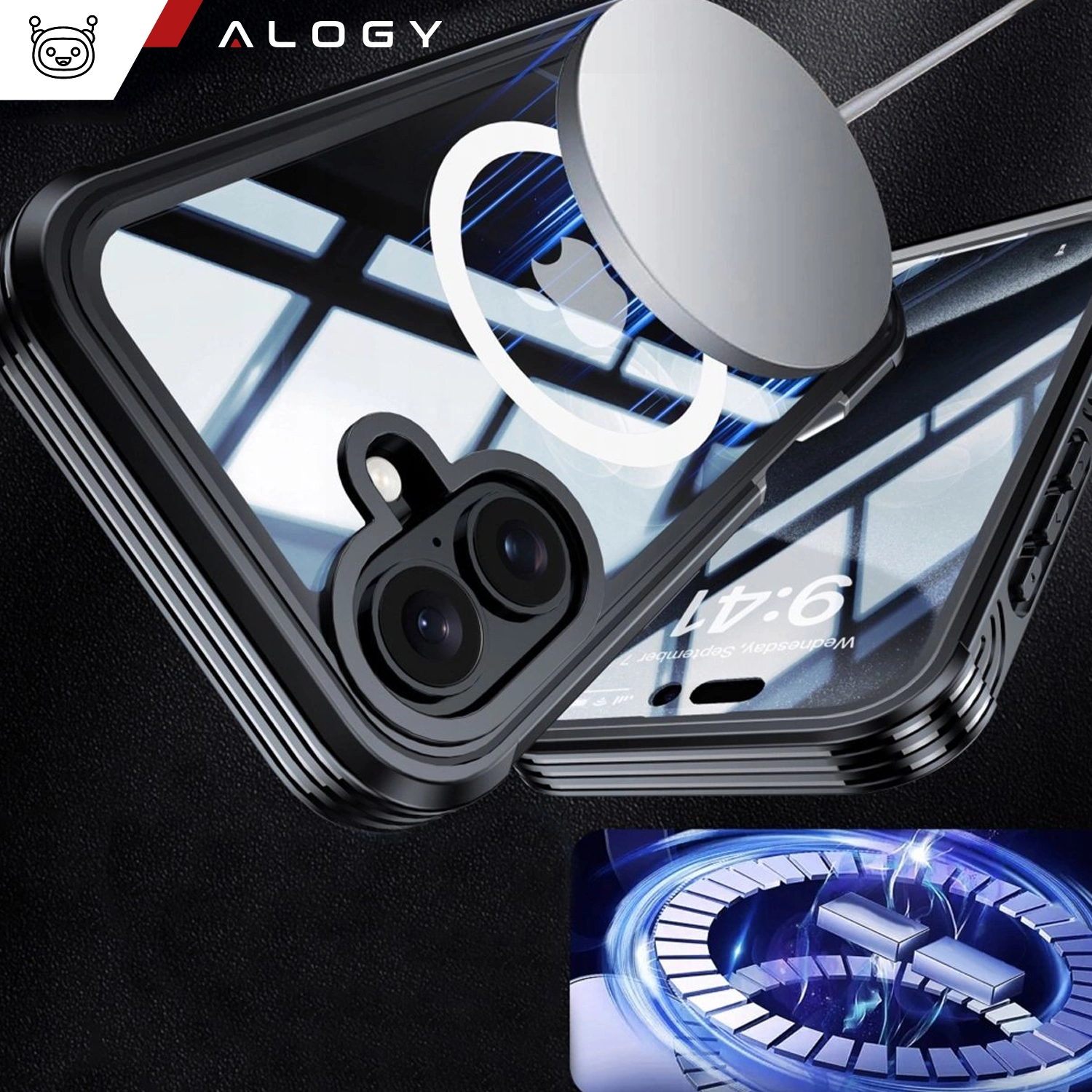 Schutzhülle für Apple iPhone 16 Plus 360 Alogy MagSafe Case mit Display- und Kameraschutz, Schwarz