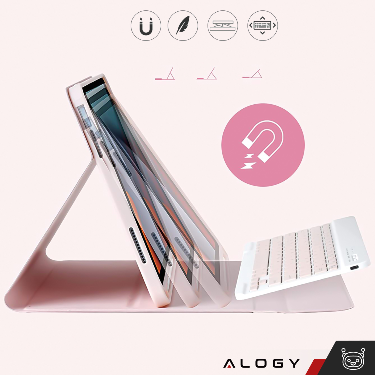 Schutzhülle mit kabelloser Tastatur Alogy Keyboard Case mit Stifthalter für Apple iPad 10.9 2022 Pink Glass