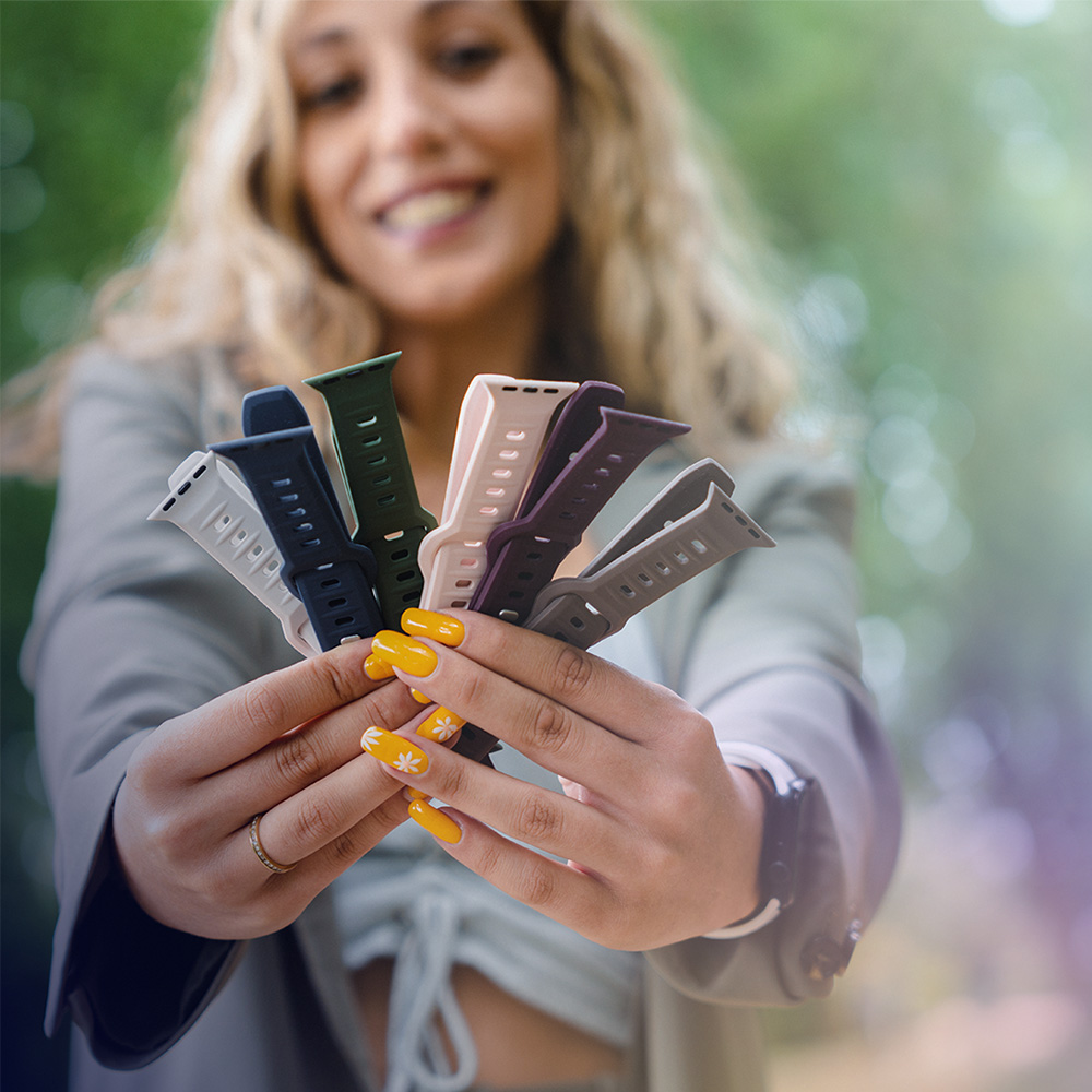 Bestellen Sie das 3mk Silikon-Uhrenarmband für Apple™ in einer oder mehreren Farben und sehen Sie, wie sich Komfort und Stil beim Tragen der Uhr verändern.