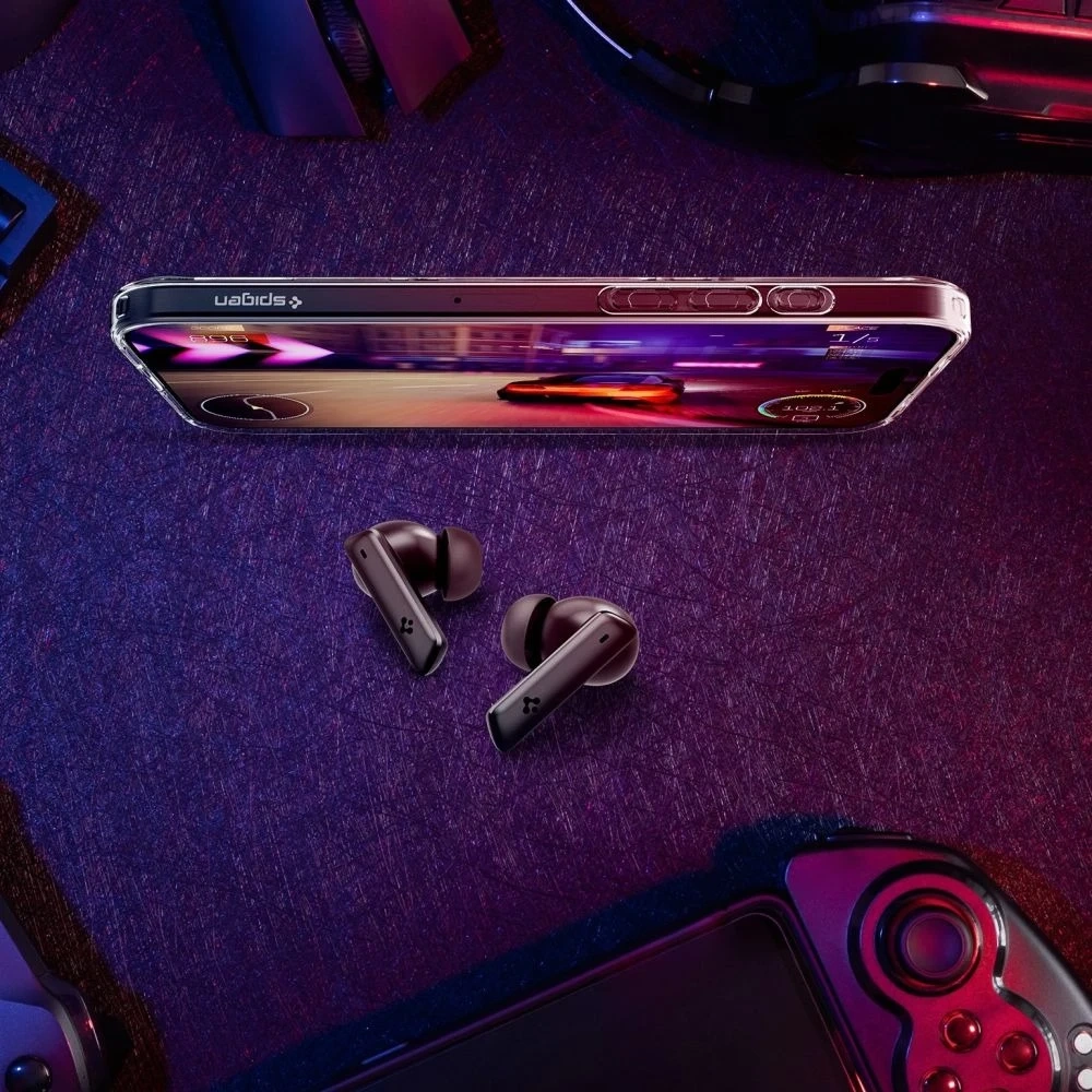 Stabilną łączność zapewnia Bluetooth 5.2, który gwarantuje szybkie parowanie i bezproblemowe połączenia. Przy użyciu aplikacji Spigen Audio możesz wybrać jeden z pięciu predefiniowanych trybów dźwięku lub stworzyć własny profil dzięki wbudowanemu korektorowi.