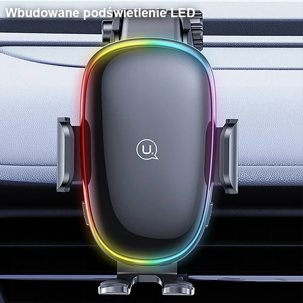 • Uchwyt USAMS US-CD187 z ładowaniem bezprzewodowym Qi 15W. Montaż na szybę, deskę rozdzielczą lub kratkę. Kolorowe podświetlenie LED, mocny zacisk i szeroka kompatybilność z iPhone i Android.