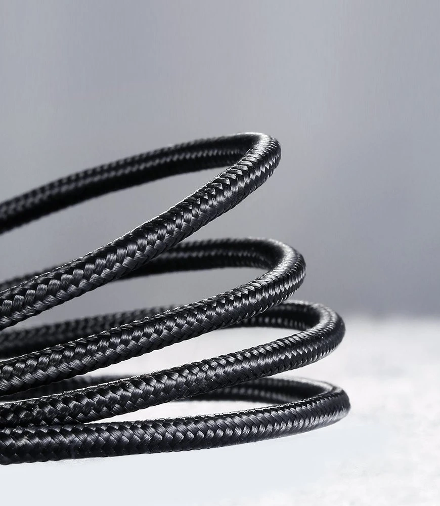 • Nylongeflecht - Das Kabel wurde in ein starkes Nylongeflecht gelegt . Nicht nur extrem strapazierfähig, sondern auch angenehm in der Haptik.