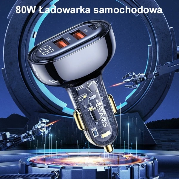 • USAMS Autoladegerät 2xUSB 1xUSB-C 80W Schnellladung