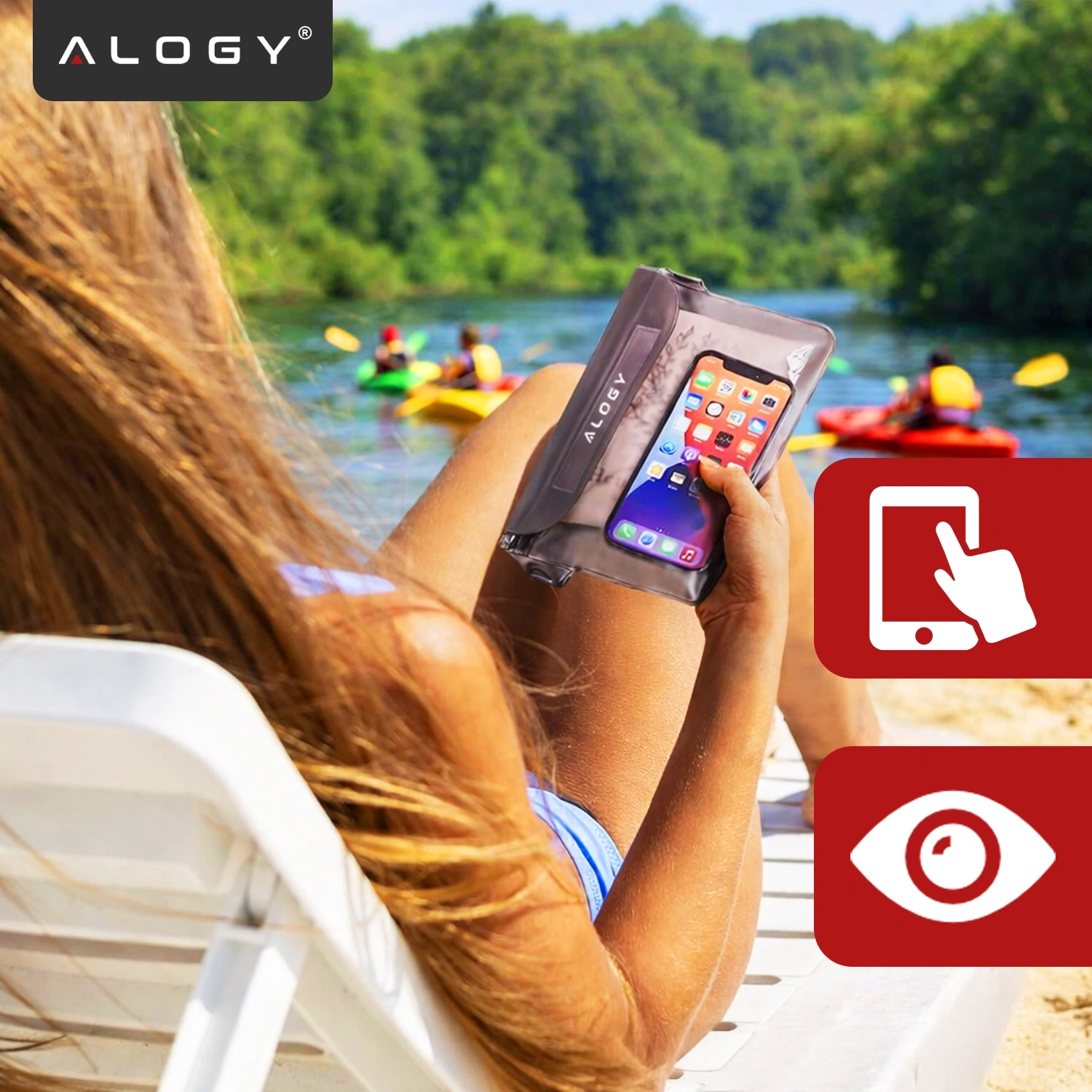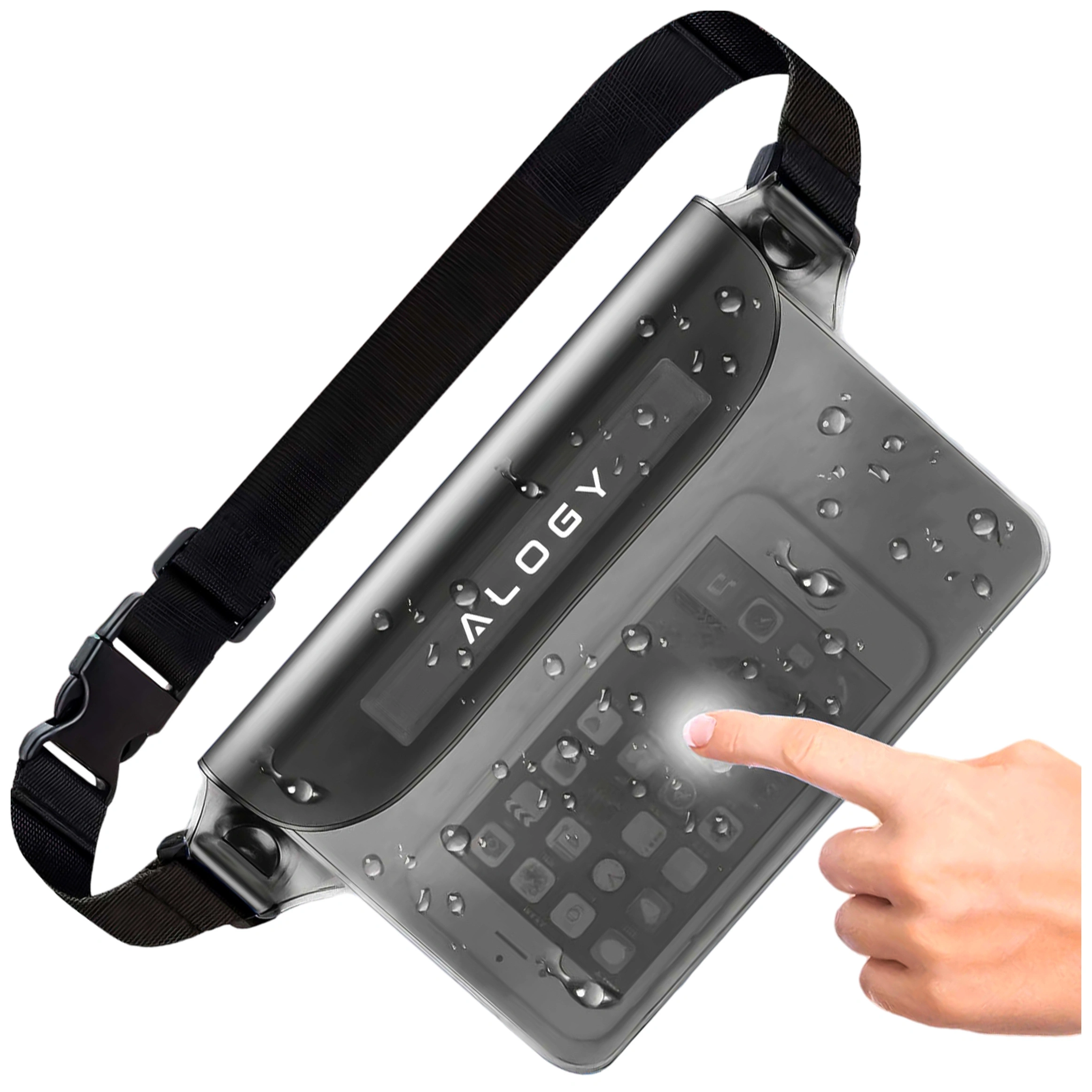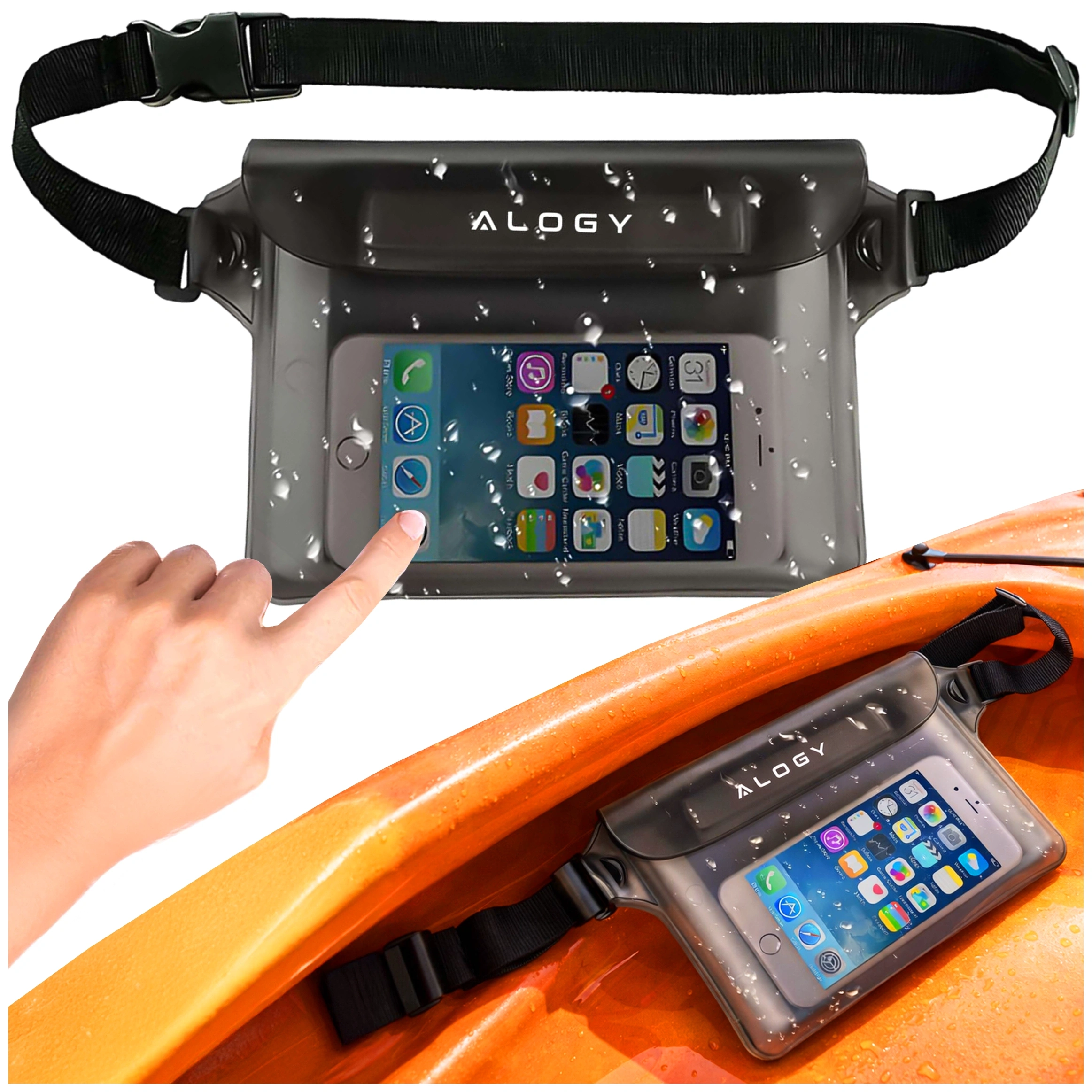 Wasserdichte wasserdichte Hülle für ein Telefon bis zu 7,5 Zoll, schwimmfähig für Schwimmbad-Kajak, Hülle, Wasserhülle, Alogy Black, Hüfttasche