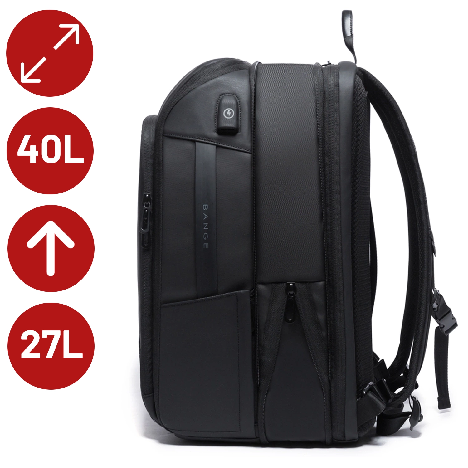 ✅ Dank des erweiterbaren Designs des Bange ProCarry™ Rucksacks erhalten Sie bis zu 13 Liter zusätzlichen Stauraum . Packen Sie alles ein, was Sie brauchen – ohne zusätzliche Tasche.