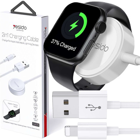 2in1 Magnetic Inductive Charger Cable for Apple Watch, iPhone 1M Lightning USB-C Alogy White