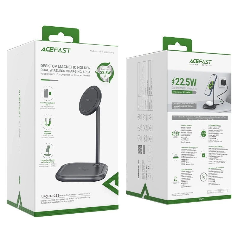 Acefast 15W Qi Wireless Charger for iPhone (with MagSafe) and Apple AirPods - Stand, Stand, Magnetic Holder - Gray (E6 Grey)