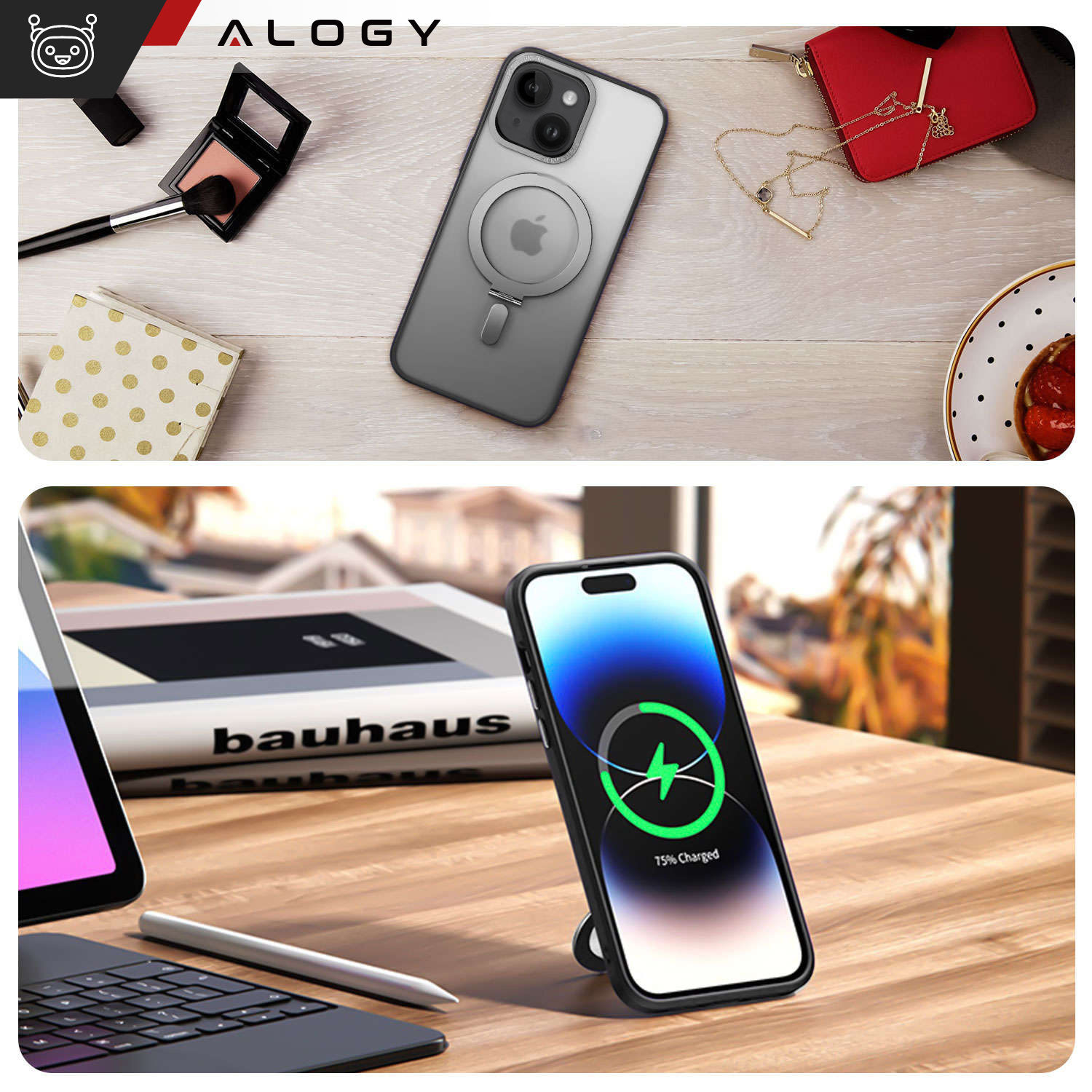 Alogy Armored Stand Ring Case protective phone cover for MagSafe for Apple iPhone 14 Plus Black Glass