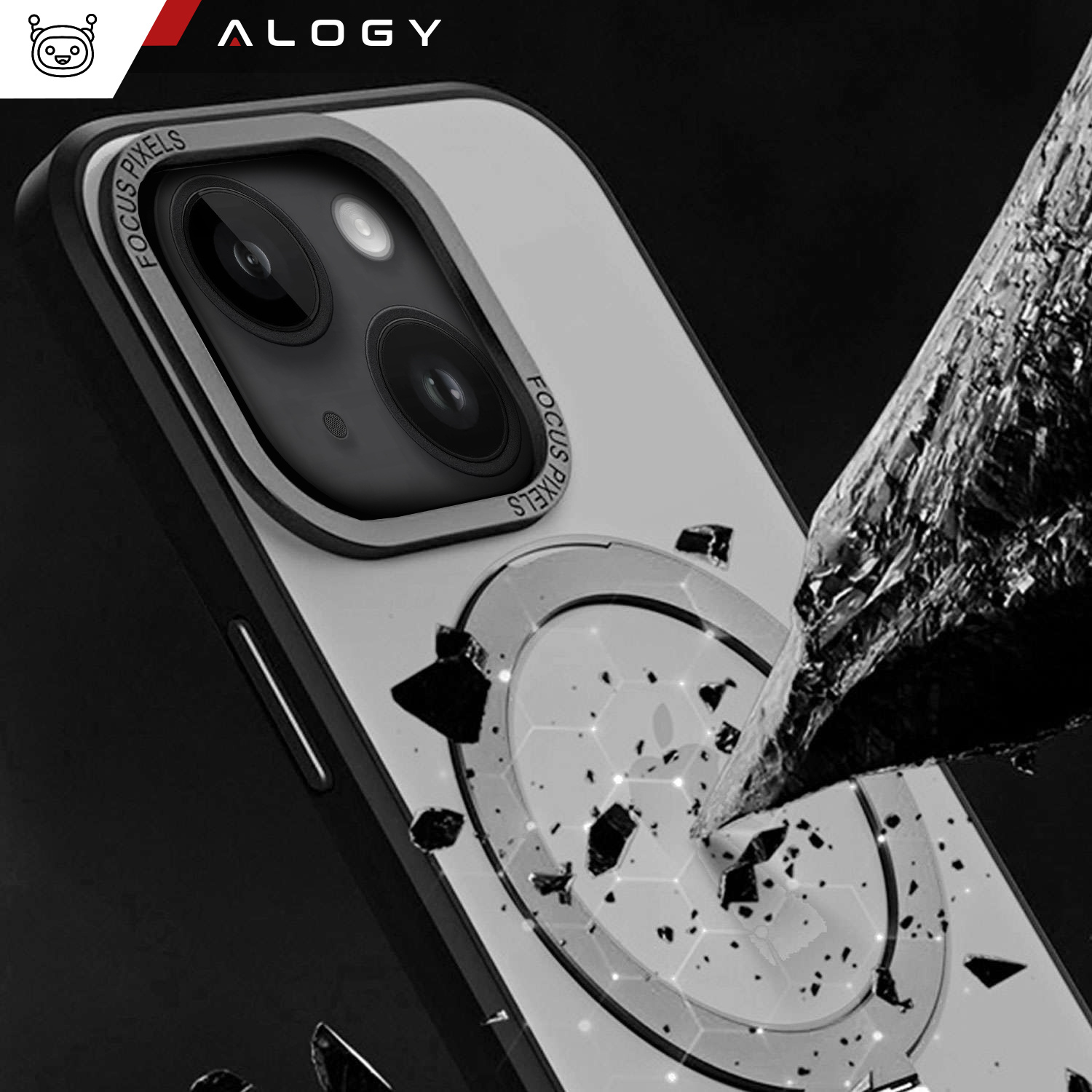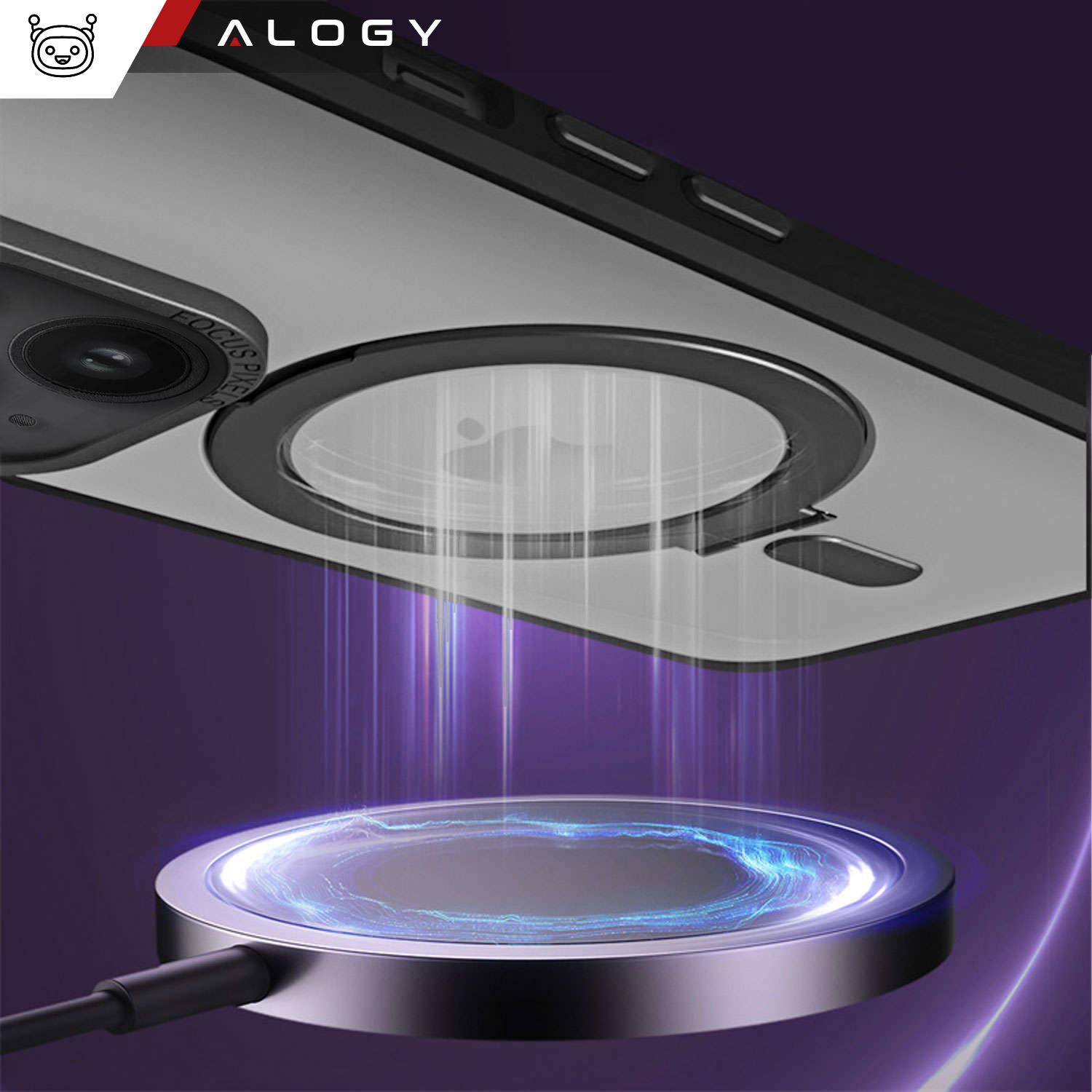 The Alogy MagSafe case is made of a combination of polycarbonate and polyurethane that securely surrounds the phone and its lens . Flexible polyurethane, used for the production of the cover, adheres perfectly without significantly increasing the dimensions of the device.