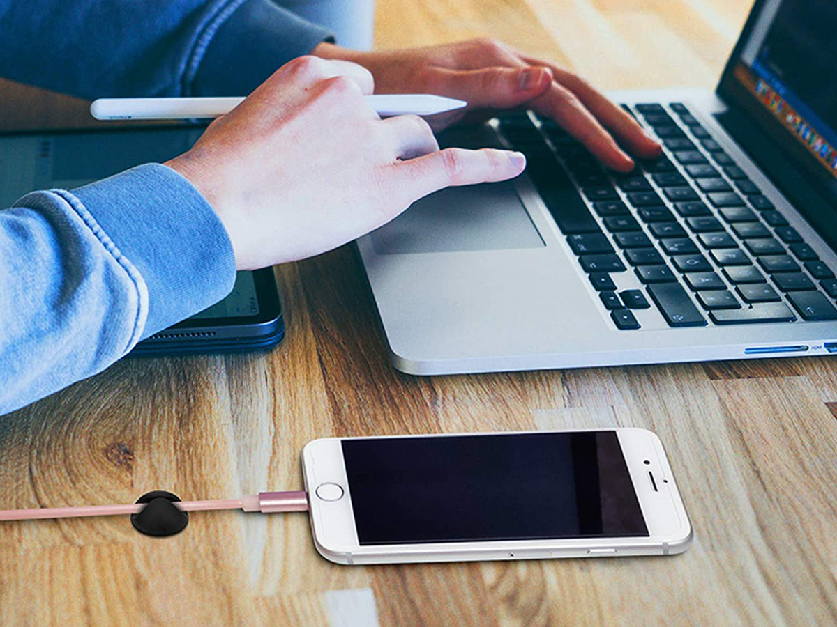 Thanks to the Alogy holder, we can control our cables and easily organize a place on our desk. The assembly of the organizer is very simple, just peel off the protective layer and stick the organizer in the place where we want to route our cable.