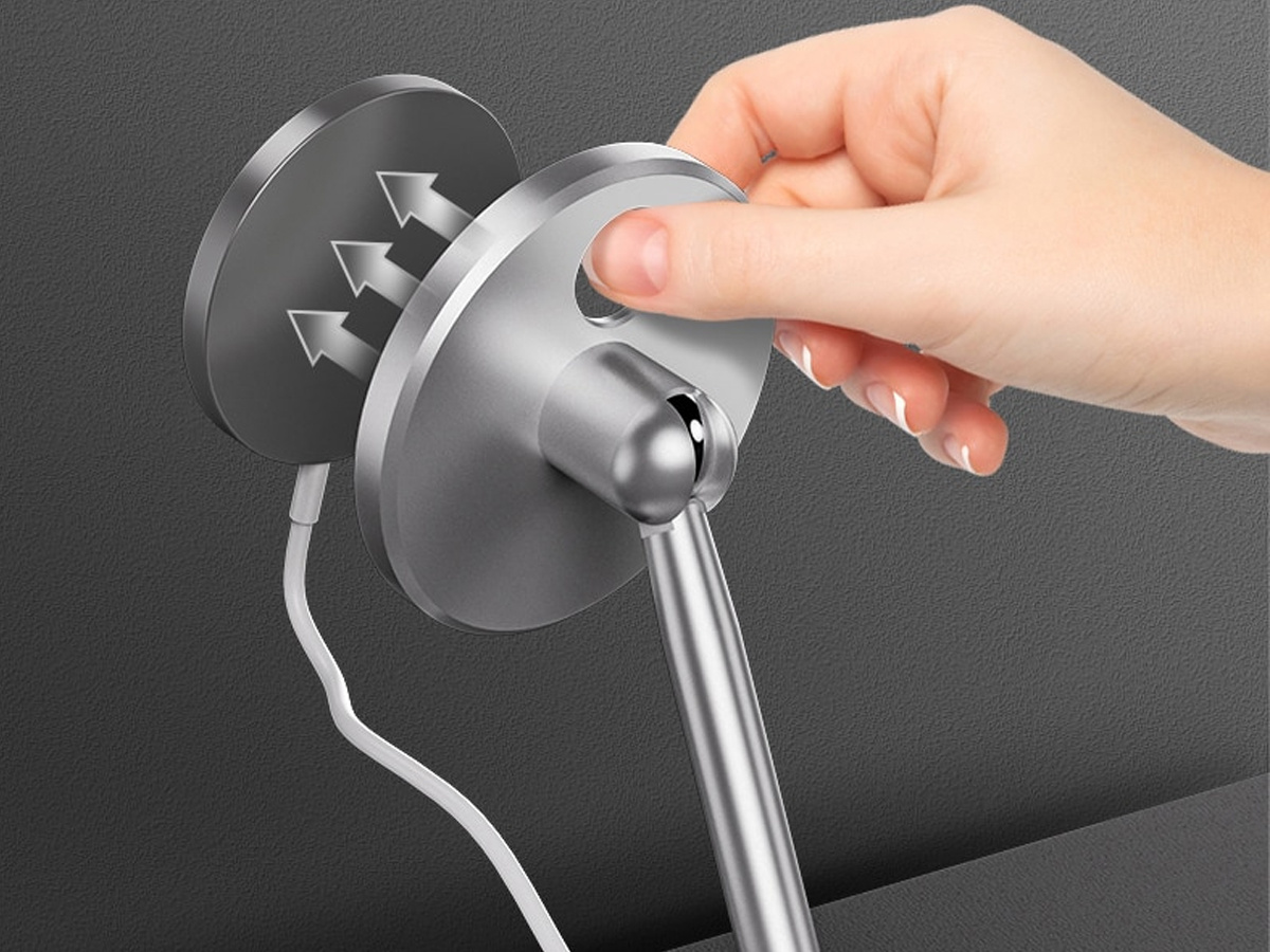 The magnetic holder was made of aluminum alloy and non-slip silicone, which was placed in the lower part of the holder. In addition, the Alogy stand has a dedicated cutout for the cable and a special cutout in the back of the handle that allows you to pull out the charger. Its dimensions are very small and adapted to the size of the charger, this solution will allow you to keep more free space on your desk.