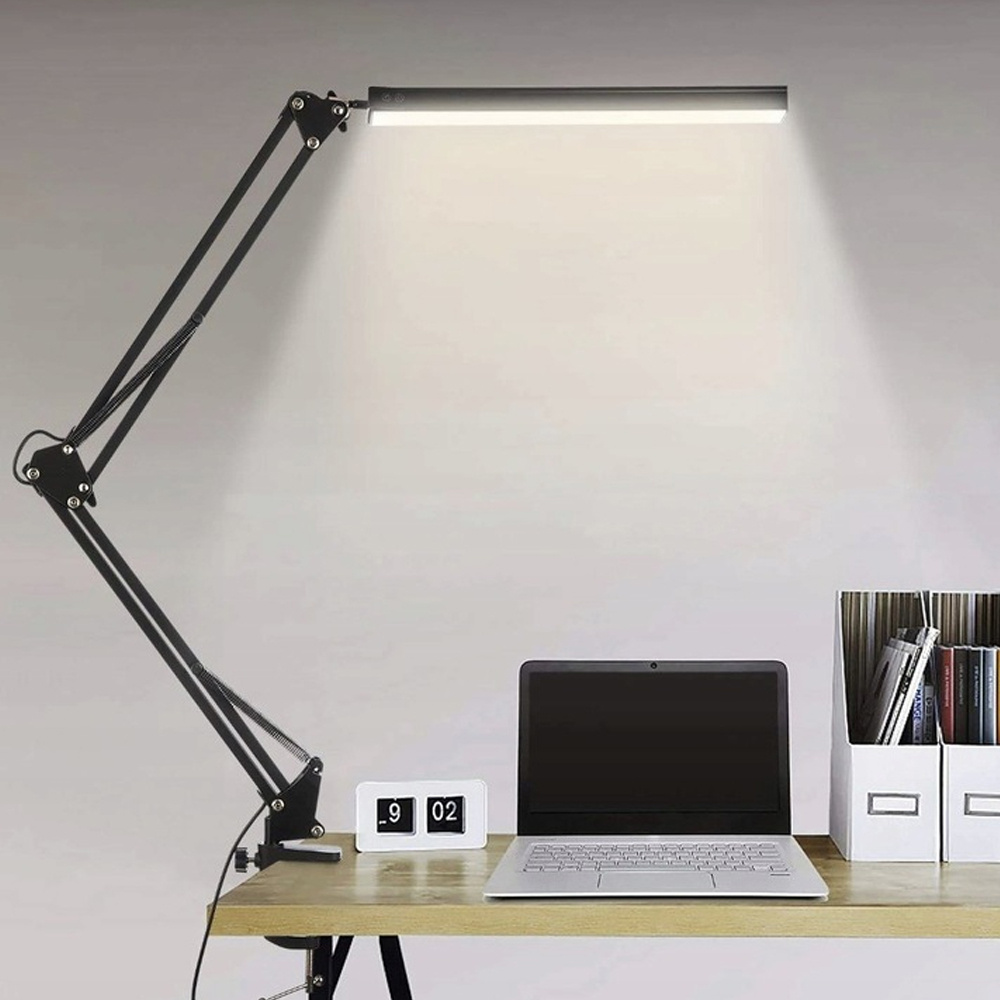 A large drafting lamp with a 3-axis design consists of two 35 cm long arms and an arm with a 31 cm long LED light panel.