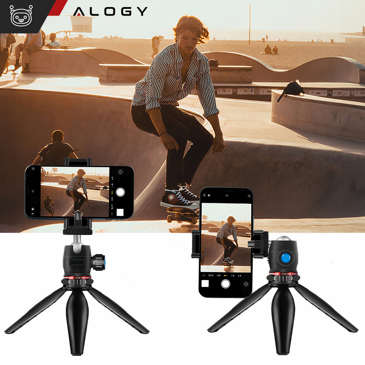 The rotating head with which the tripod is equipped has a 1/4" thread to which you can directly screw gopro equipment, a camera, a camera.