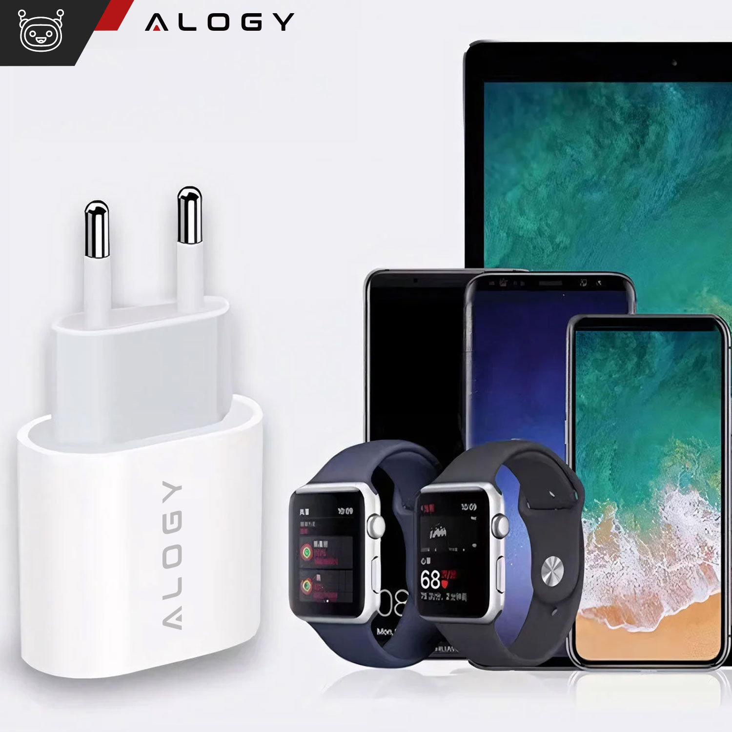 The mains charger from the Alogy brand is a classic device with a minimalist design. For quick and safe charging of mobile accessories. It has a built-in USB-C Type C port that supports fast charging technology, thanks to which we can quickly renew the energy in the device.