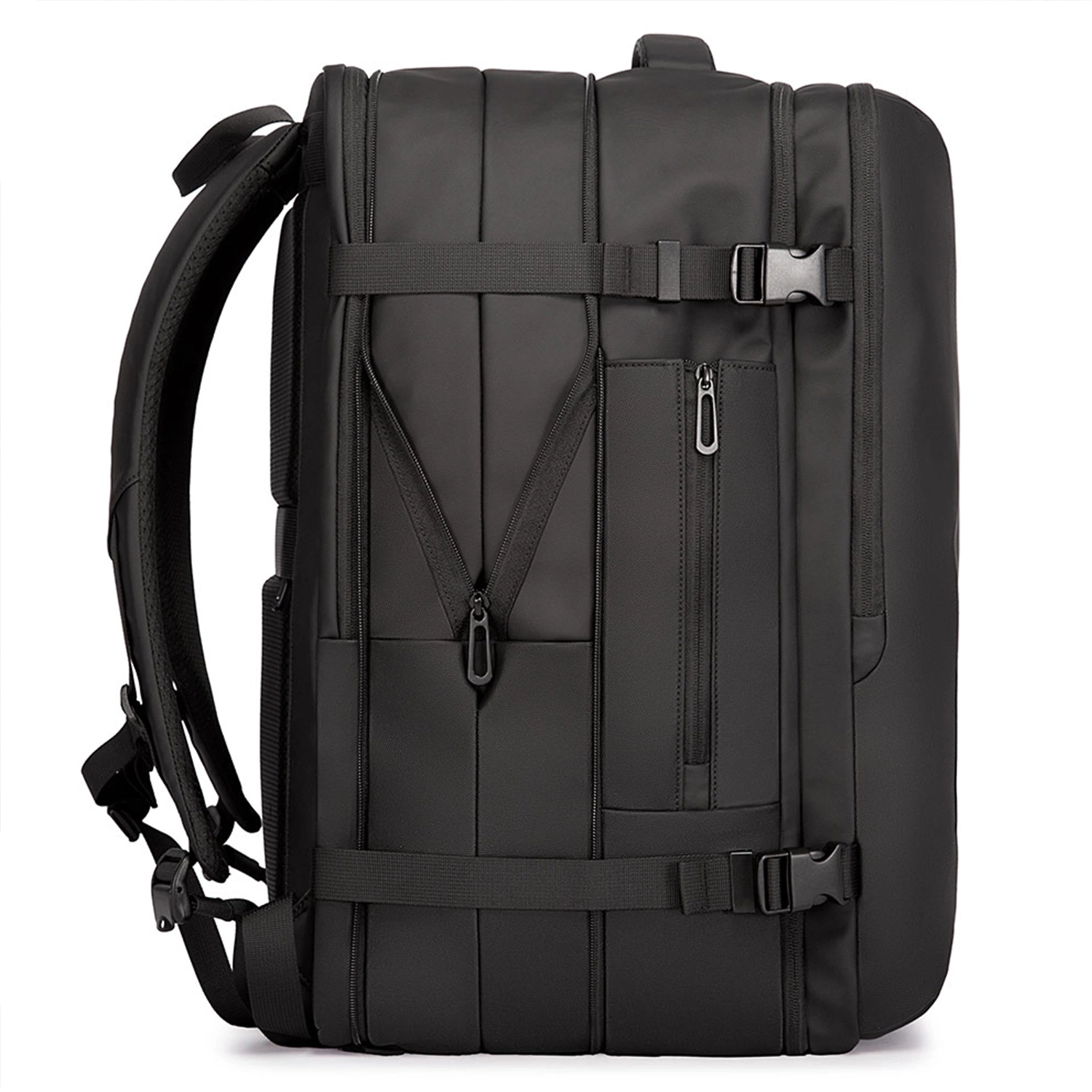 The main compartment of the backpack can be expanded and unzipped like a suitcase, allowing you to store larger items such as clothes.