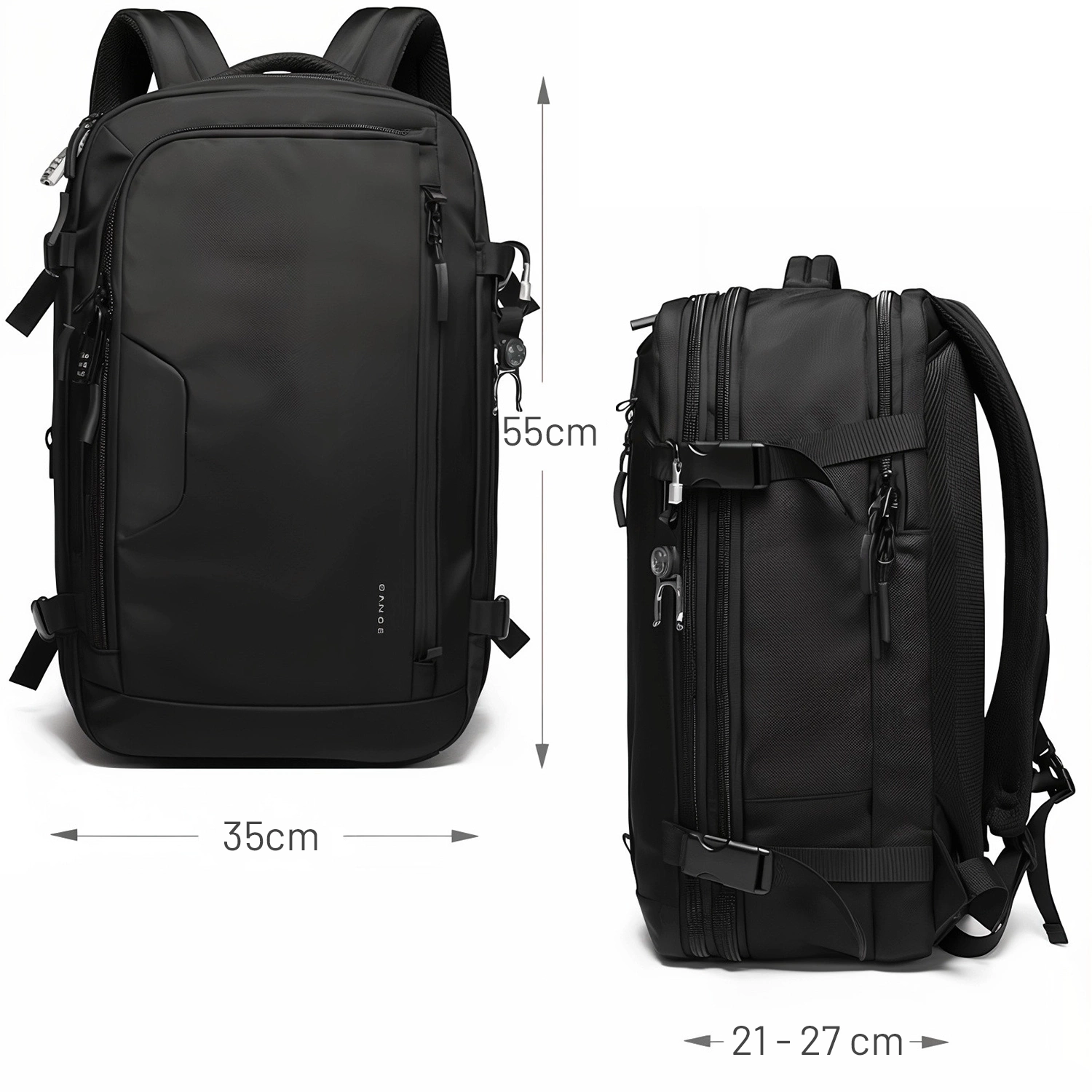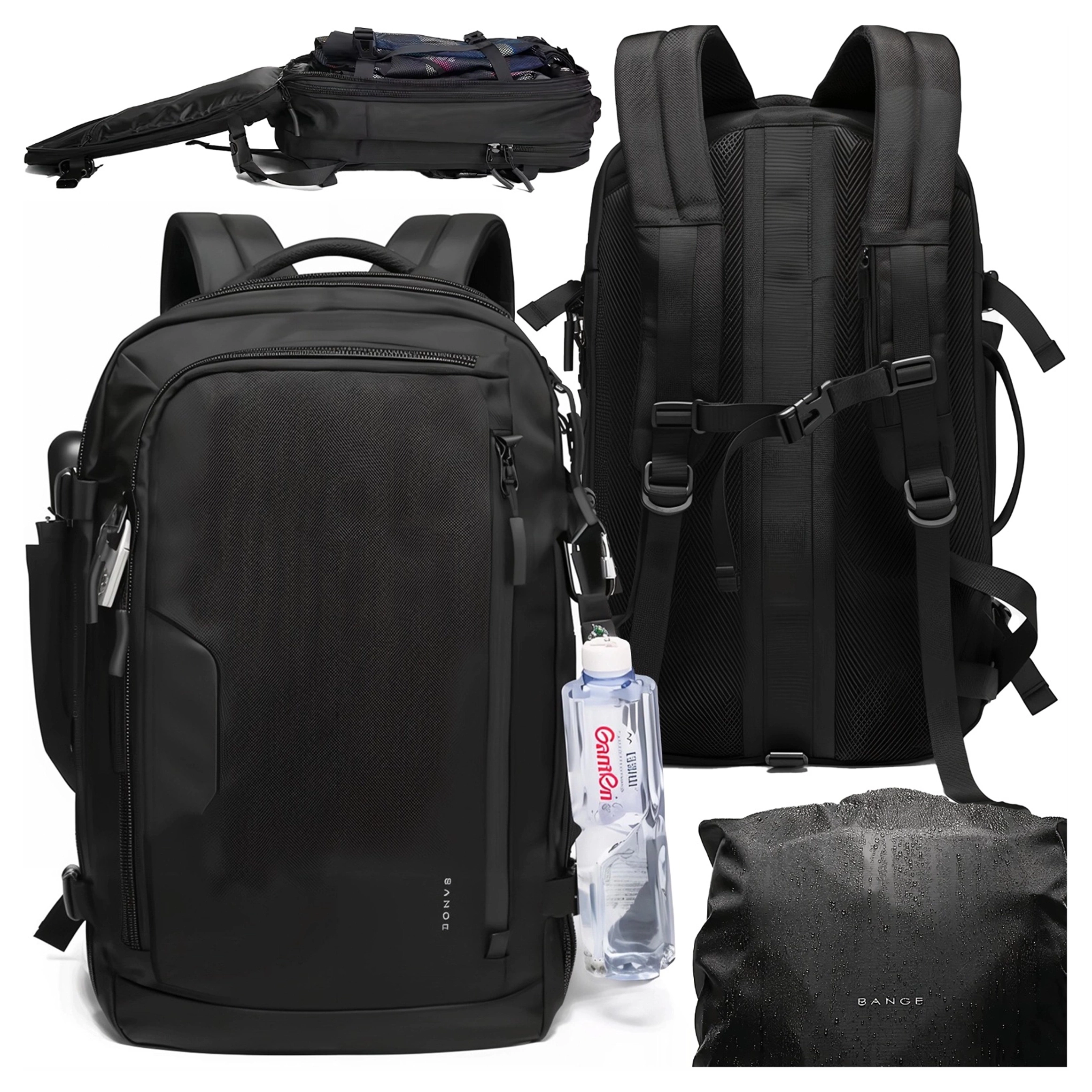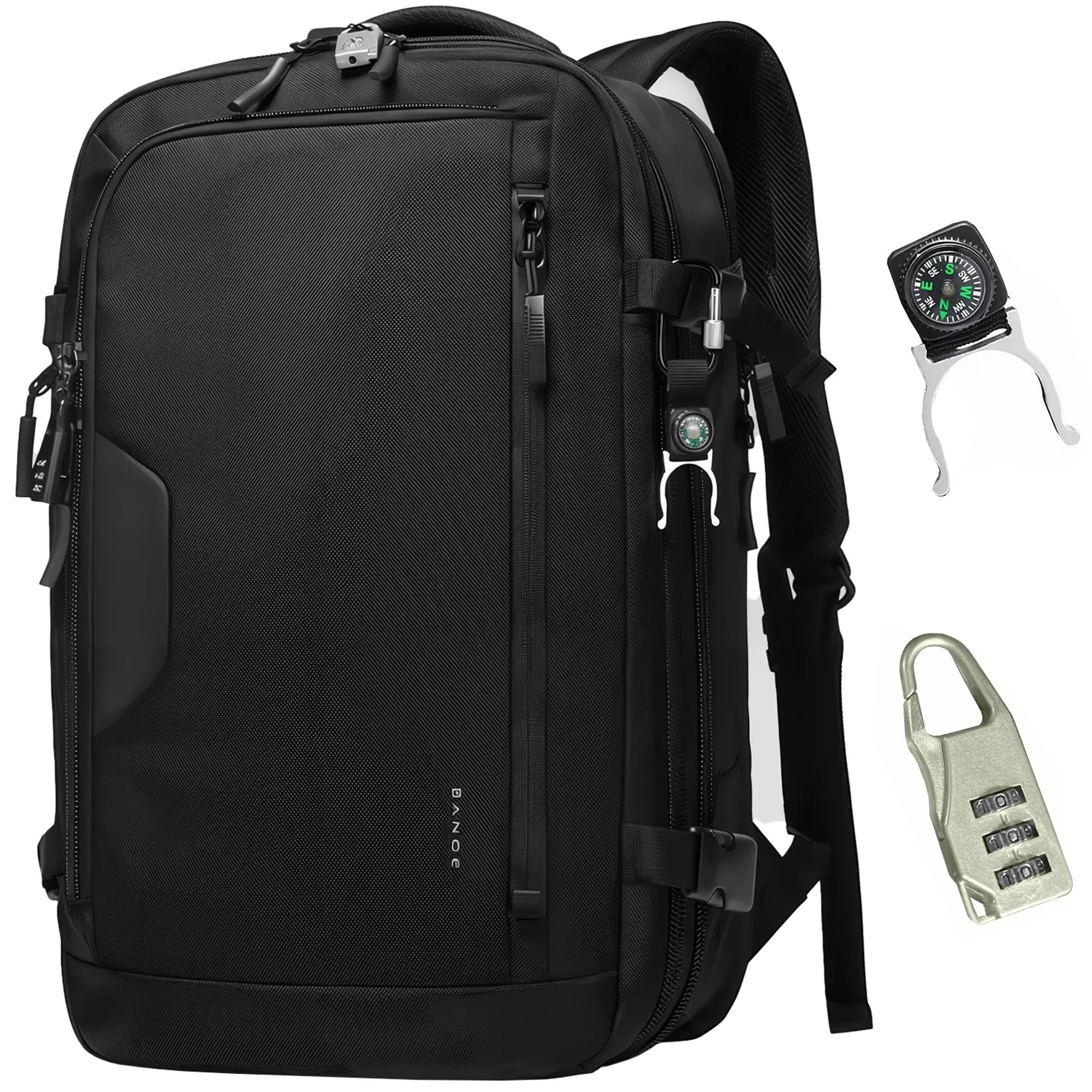 Bange Waterproof Backpack for Laptop 15.6" City Travel Expandable 55 x 35 x 21-27 cm for Airplane Men's Women's Padlock Code Compass Bottle Holder Black