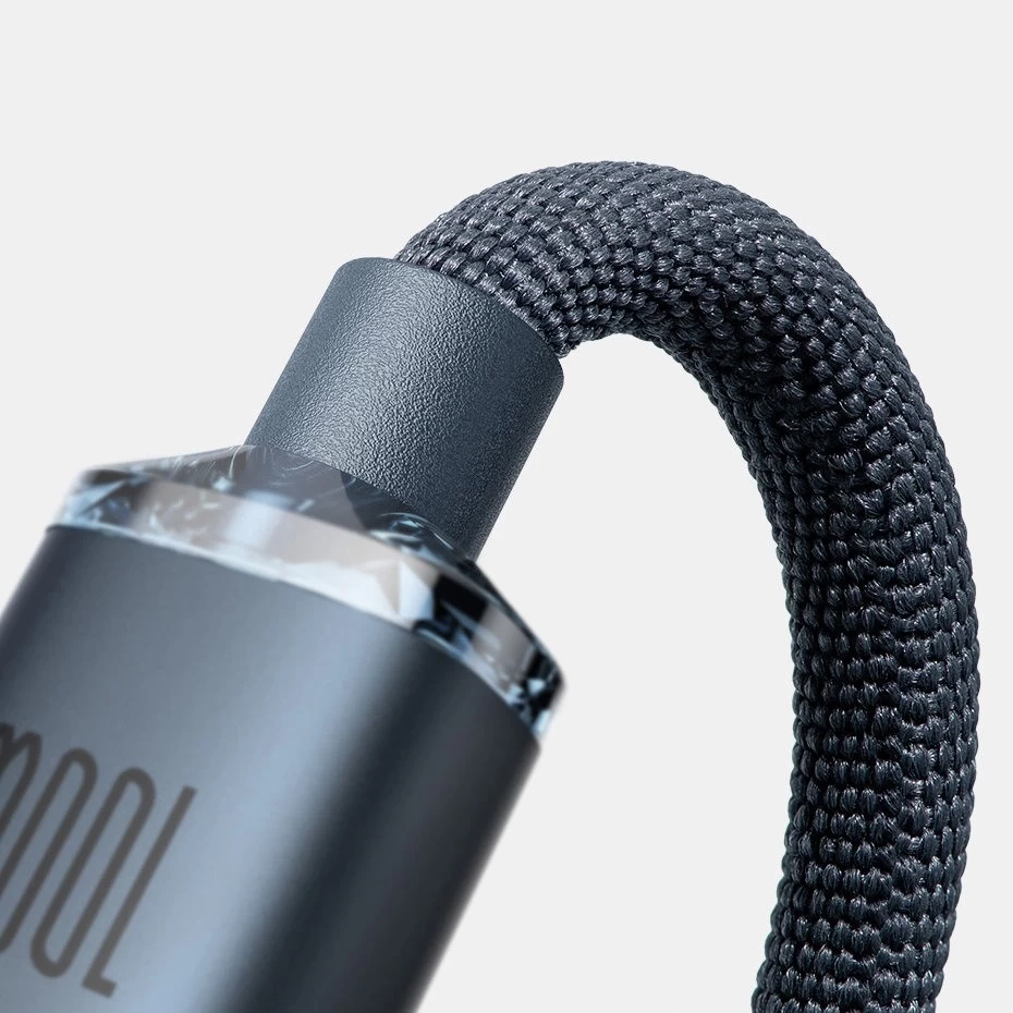 The braided cover of the USB Type C - USB Type C Baseus Crystal Shine Series cable with a durable texture has additional reinforcement in the place where the plug connects to the cable. It is therefore resistant to bending and stretching. Inside there is an 8-wire copper cable, which, thanks to the intelligent chip, does not heat up even during simultaneous charging and data transfer.