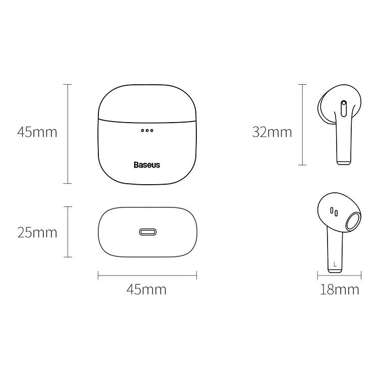 Baseus E8 Wireless Bluetooth 5.0 TWS Earbuds Waterproof IPX5 Black (NGE8-01)