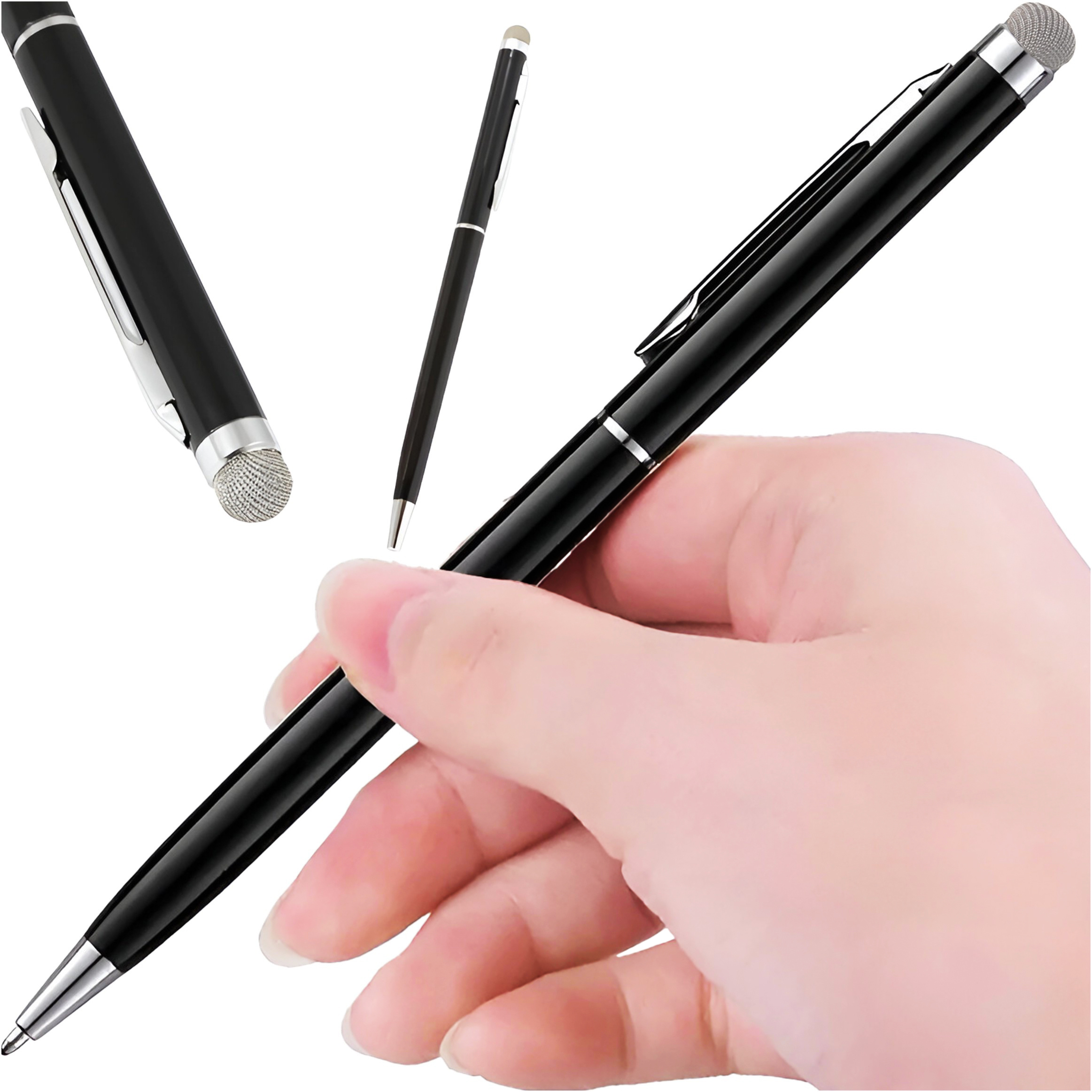 The capacitive stylus with a pen is a perfect combination of two useful products in one. The stylus is made of aluminum alloy, unlike other plastic counterparts. The main function of the product is the ability to use touch screens, using special microfiber fibers that form a touch tip. The second, equally important function is the ability to use the device as a standard pen.