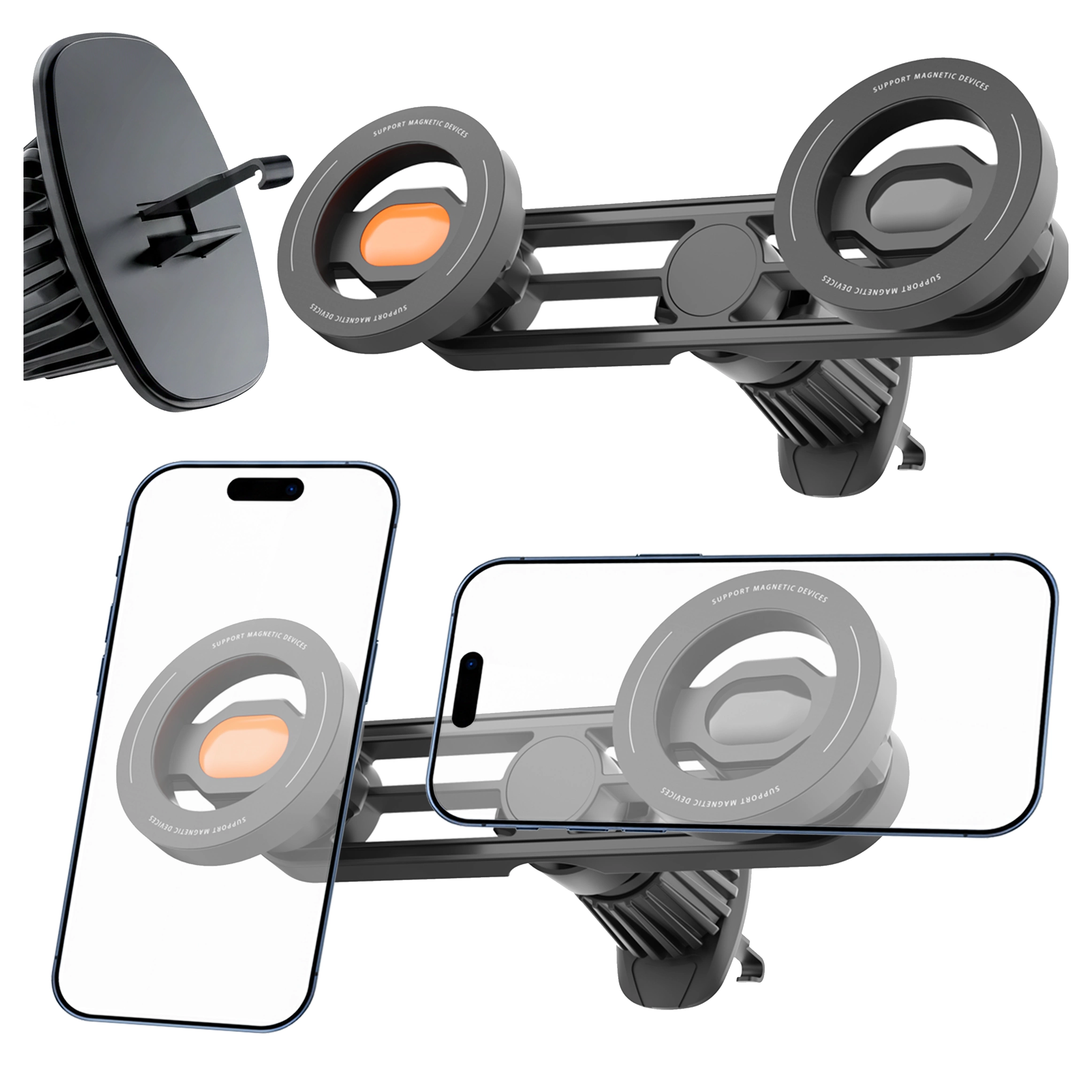 ✅ Imagine driving with both phones securely attached and ready to use – without shifting, falling out, or constantly readjusting. The 2-in-1 MagSafe™-compatible dual magnetic module guarantees a secure hold, even on bumpy roads.