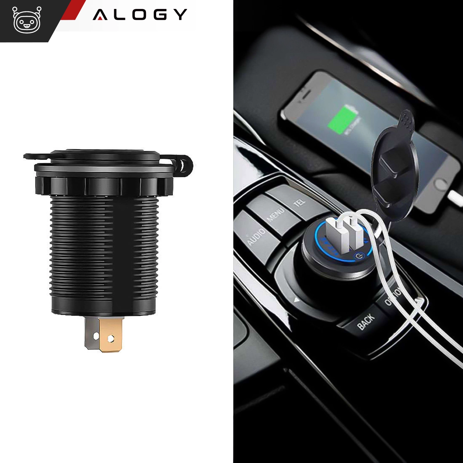 The Alogy car / motorcycle charger is a high-quality device with a touch switch that will allow you to quickly charge mobile devices using two USB QC 3.0 sockets.