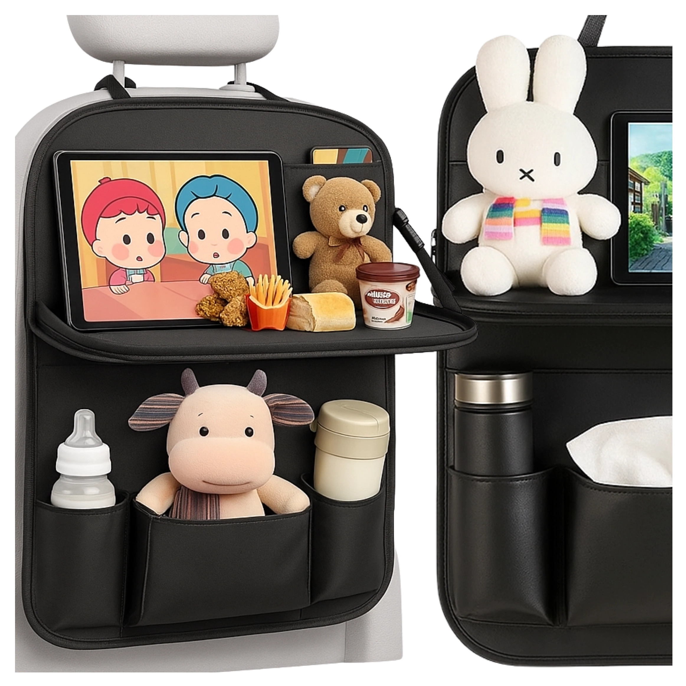 2x Car organizer car travel table car seat protector rear backrest seat Alogy Black