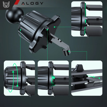 The Alogy brand holder is equipped with a practical hanger that easily adapts to various ventilation grilles in the car. Thanks to the swivel clamp, the user can securely mount the handle, ensuring solid stability while traveling.