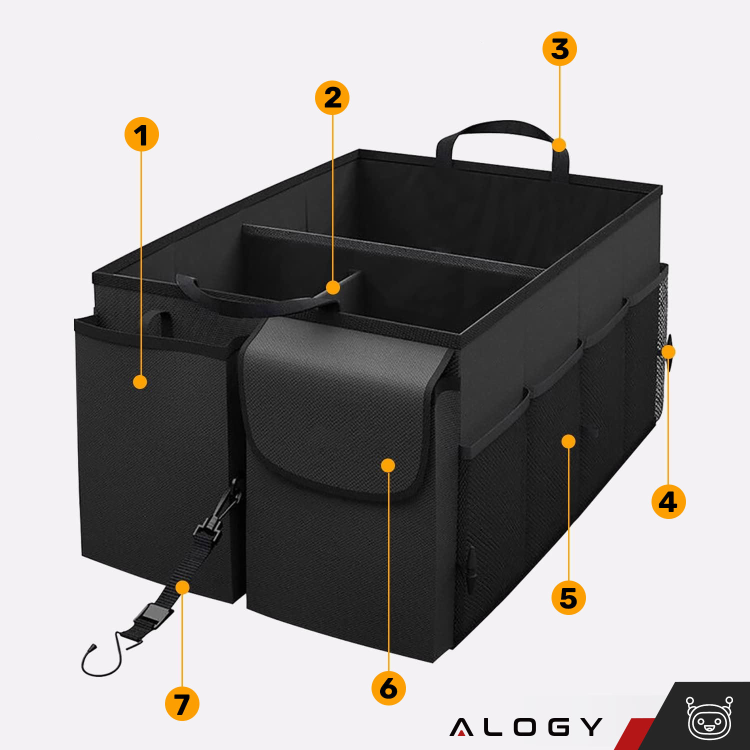 - Set content: 1x car organizer, 1x compartment, 2x stiffening bottom, 1x strap