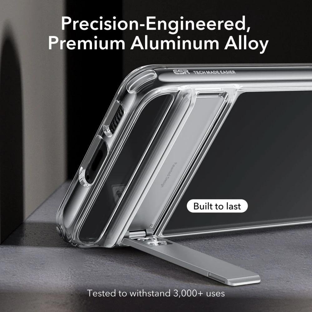 A solid metal stand ensures simpler and more comfortable operation of larger smartphones, e.g. while watching movies.