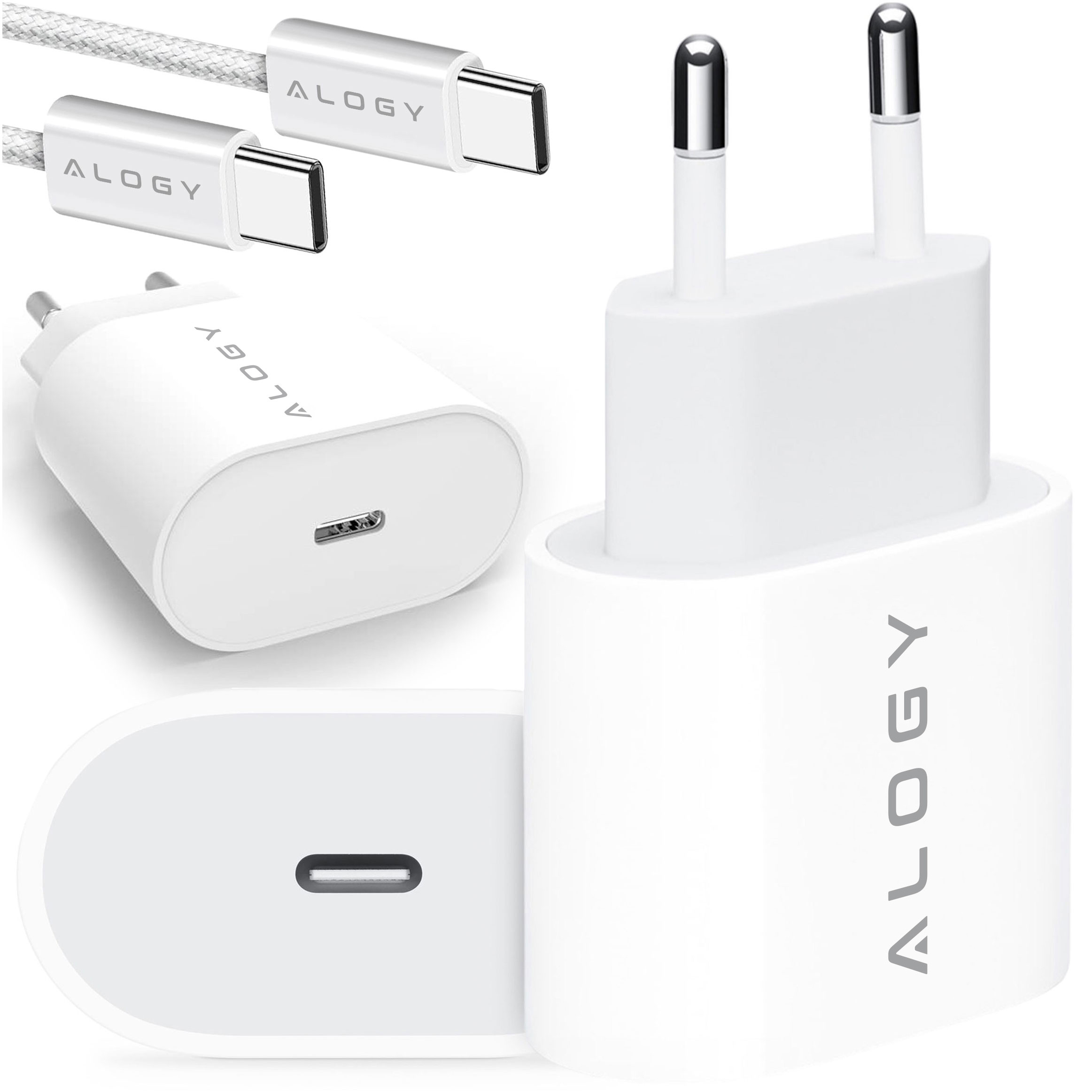 ❣️ The original set from Alogy includes: Type-C wall charger and 1M nylon braided cable with USB-C to USB-C connector . These products are designed to work with the latest iPhone 15, 15 Pro, 15 Pro Max, 15 Plus models.