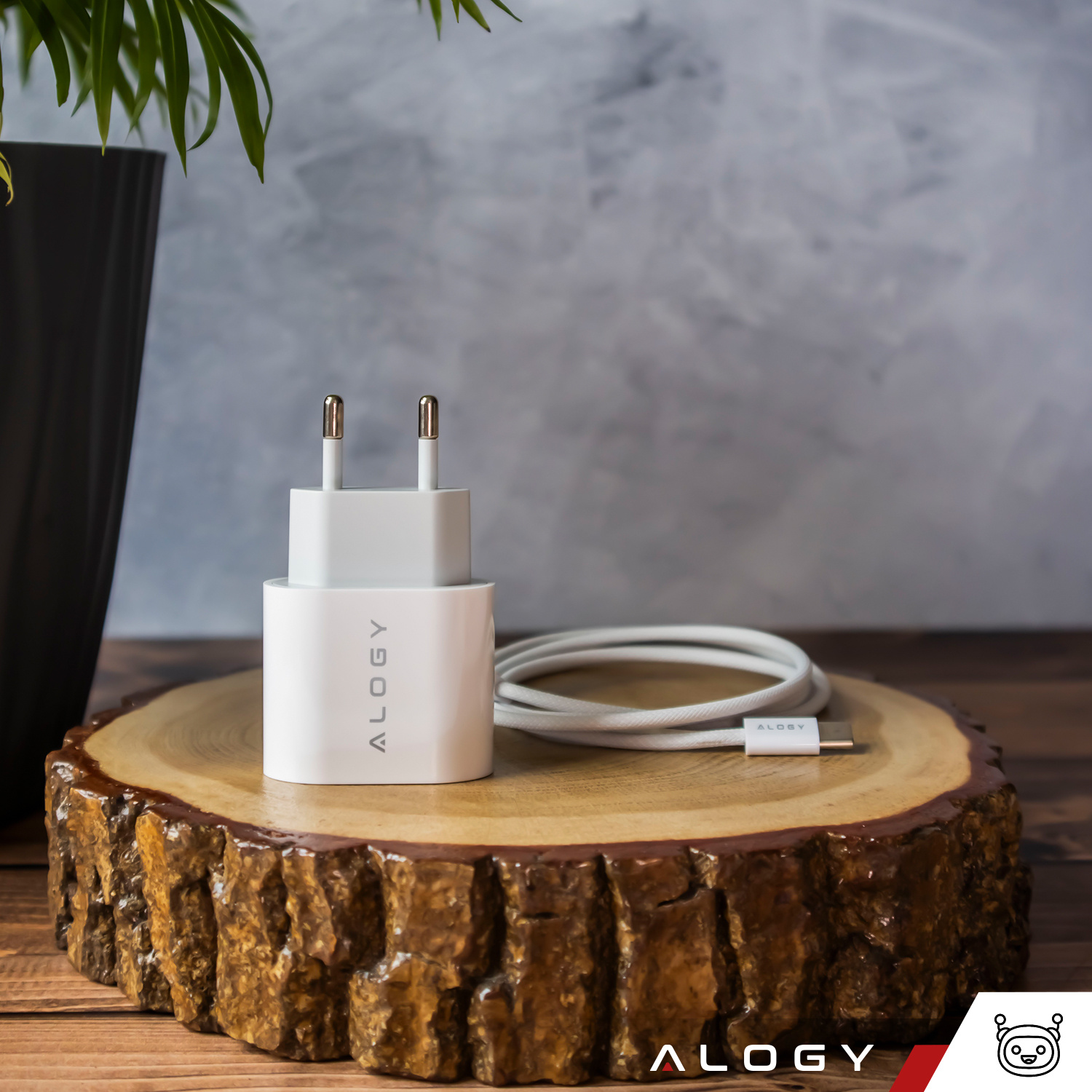 The Alogy wall charger and USB-C cable work with the latest iPhone 15 models and all other mobile devices that have a USB-C input, including smartphones from other brands including Samsung, Xiaomi, Huawei, Motorola, as well as tablets, cameras, headphones, styluses and lamps.