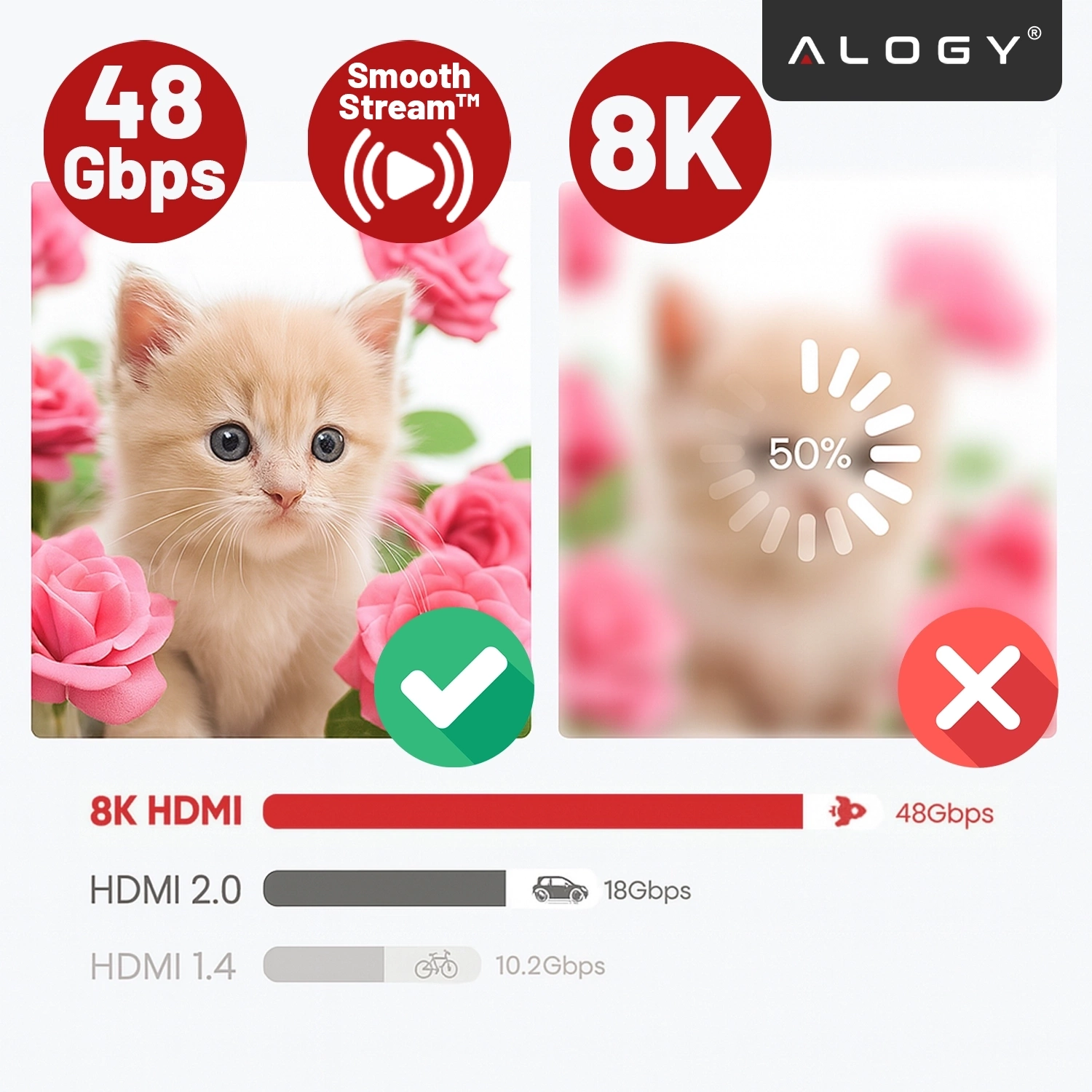 ✅ The Alogy 2.1 cable offers a bandwidth of up to 48 Gbps , allowing you to enjoy smooth operation even in 8K resolution .