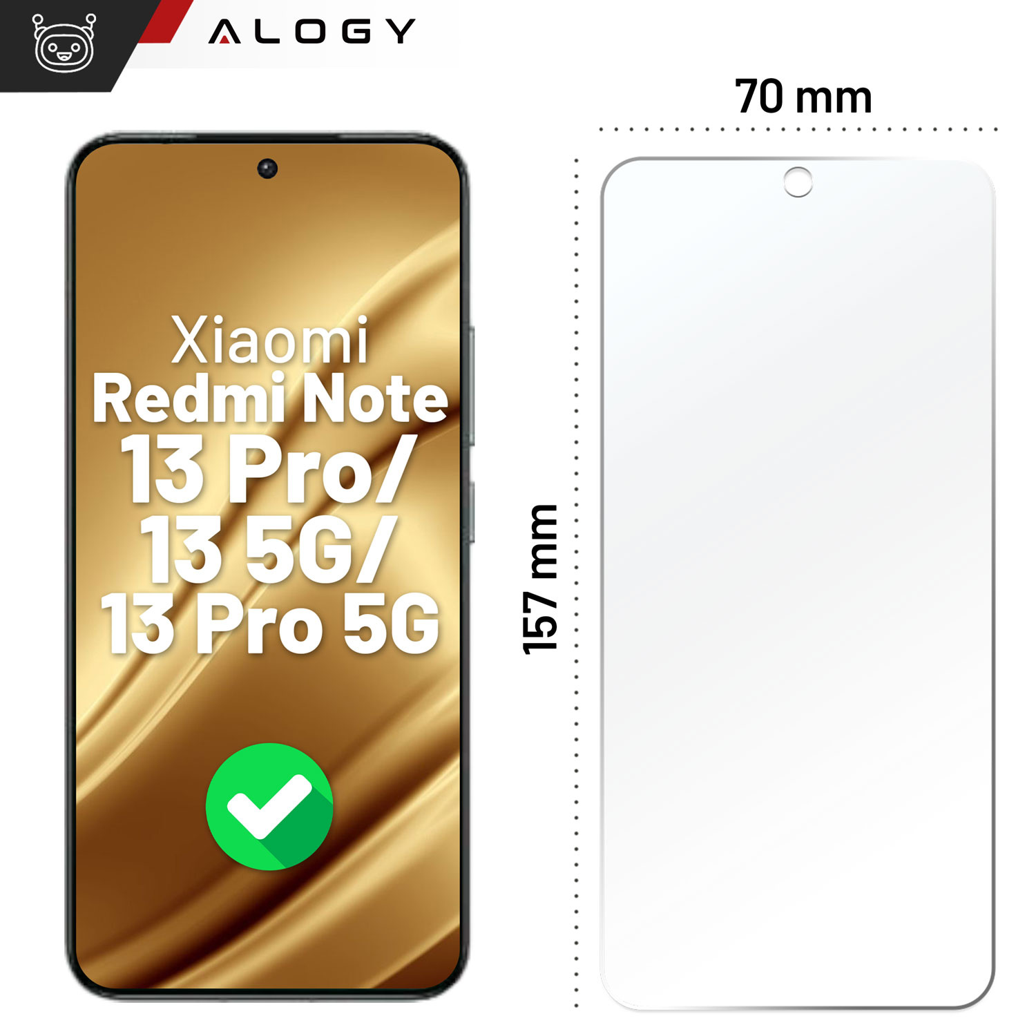 Hybrid Glass for Xiaomi Redmi Note 13 Pro / Note 13 5G / Note 13 Pro 5G for Alogy Flexi Glass 9H Case Friendly Flat Screen Protector