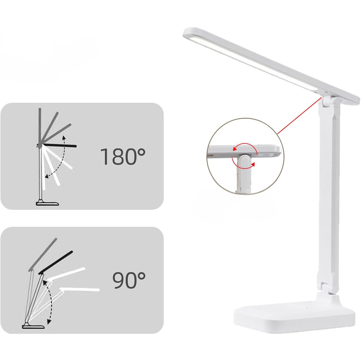 • A white, foldable, touch-sensitive school LED desk lamp with three lighting modes and a wireless power option is practical lighting that can help increase comfort while studying and working.