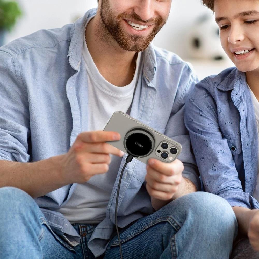 • Tech-Protect QI15W-A33 Magnetic Wireless Charger with Stand Function and MagSafe. Supports PD and QC, 100 cm USB-A/USB-C cable included. Safe charging with FOD, thermal protection and modern design.