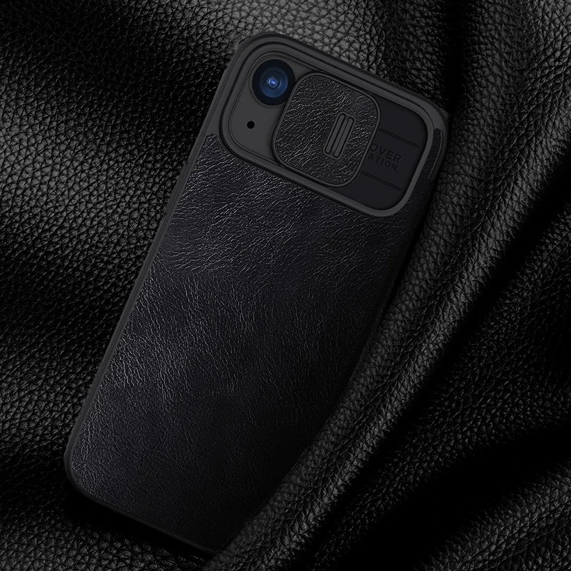 The Nillkin Qin Pro Leather case has a natural leather texture - it has a very elegant, classic look . The cover with a flap prevents your phone from getting scratched and dirty . It has a sliding lens cover that protects the camera and your privacy . Precise cutouts for the charging port, speakers and buttons enable convenient use.