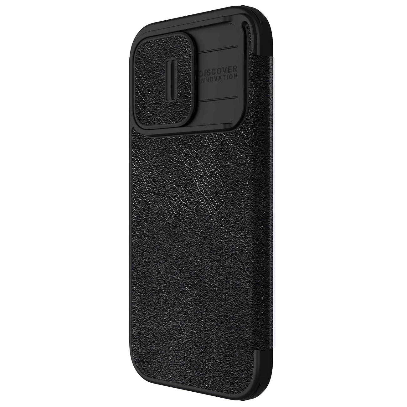 Nillkin Qin Pro Leather Flip Case with Camera Protector for iPhone 15 Pro Max in Black