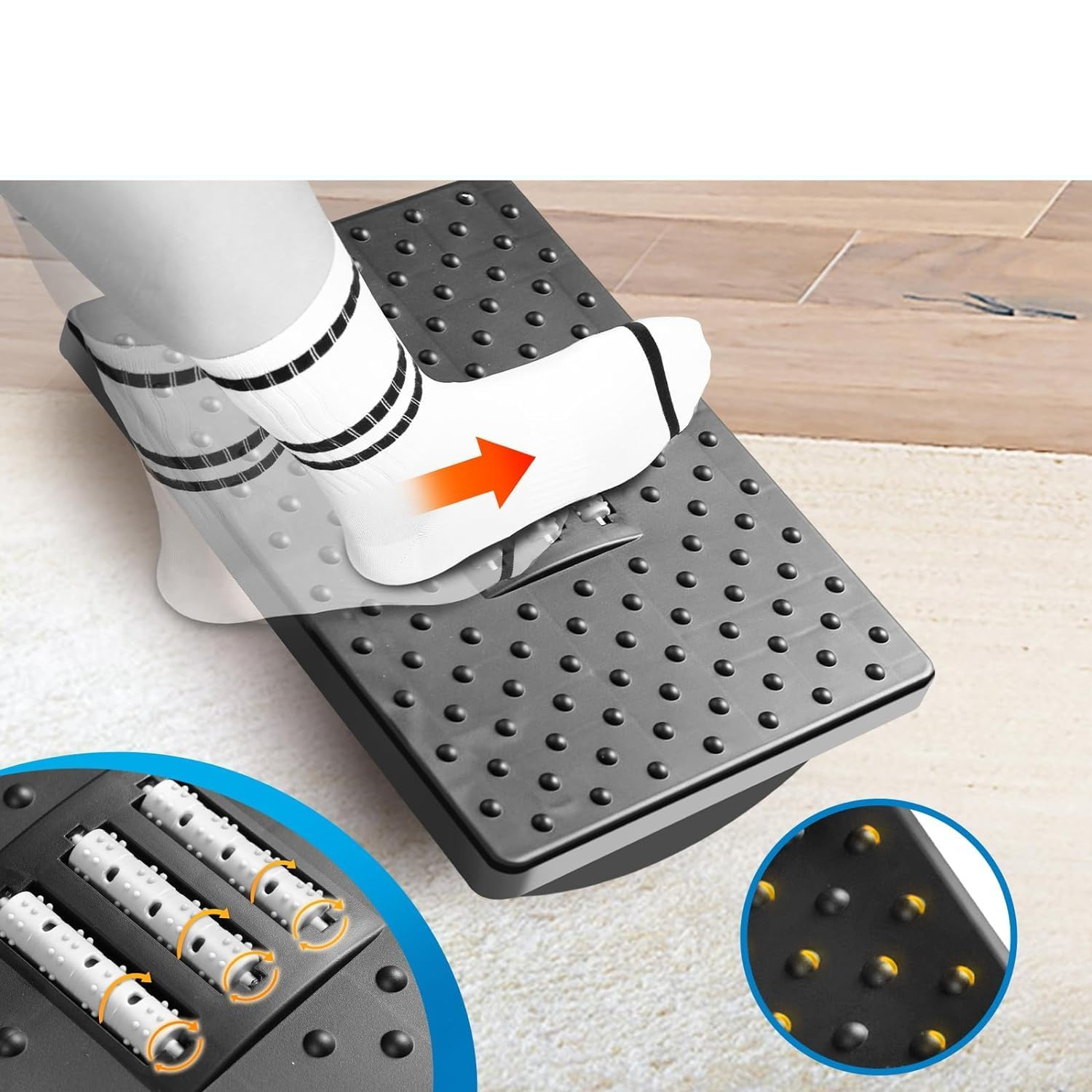 - Application: Helps relax the feet, leg muscles and maintain proper posture when working at a desk