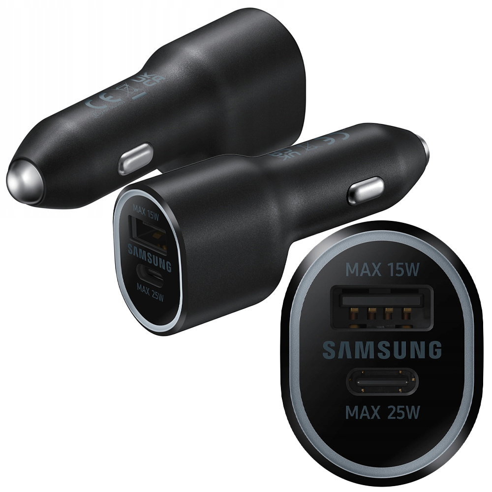 The Samsung car charger is a compact device with high charging power. It was made of the highest quality materials and equipped with two USB and USB Type-C charging ports, to which you can connect most mobile devices available on the market, including smartphones, navigation or hands-free devices.