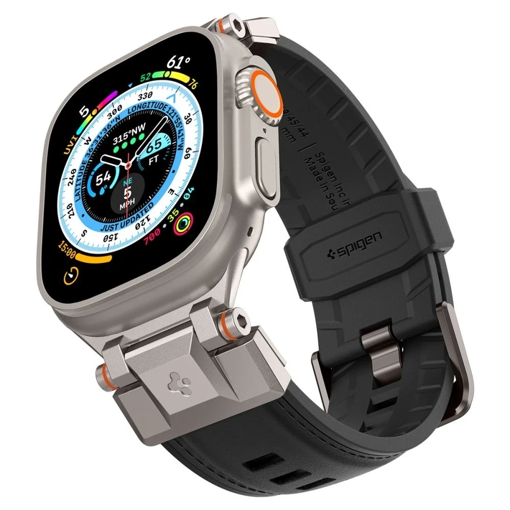Discover an extraordinary combination of style and durability with the DuraPro PU strap from Spigen. This strap is built with the highest quality in mind, combining a unique, solid construction with bold metal accents. The color-matched metal connectors perfectly complement the titanium casing of the Apple Watch Ultra, creating a harmonious and elegant whole.