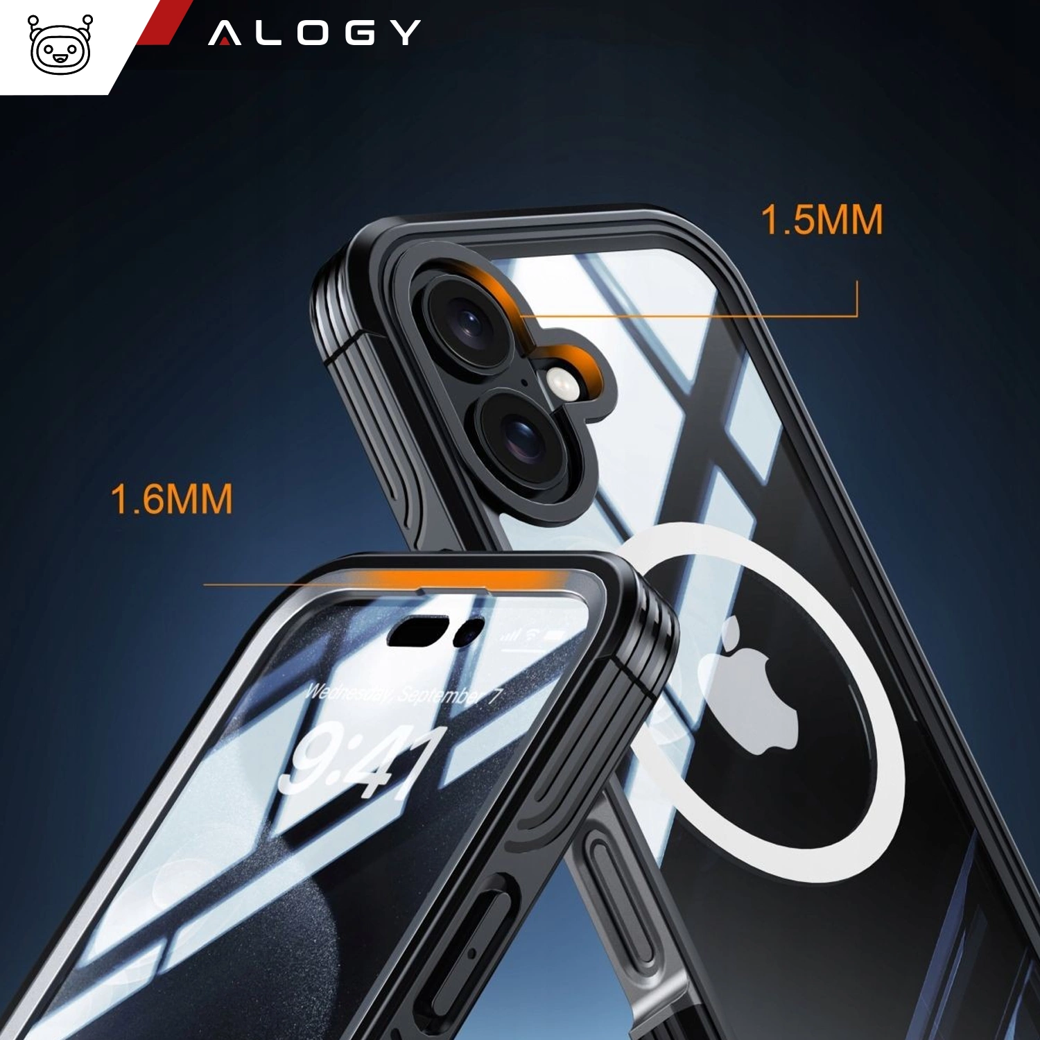 Protective phone case for Apple iPhone 16 Plus 360 Alogy MagSafe Case with display and camera protection Black