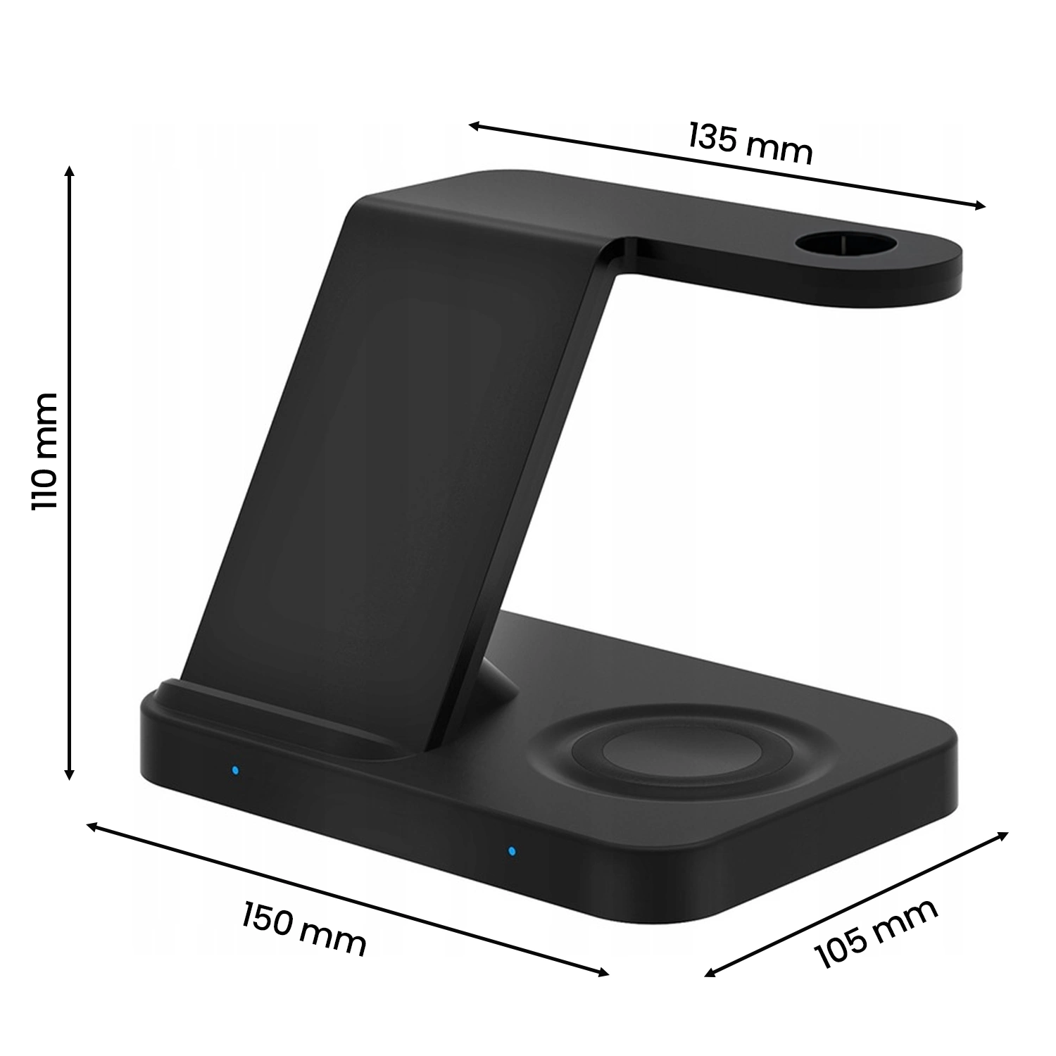 Forget about the hassle of tangled cables and fighting for free sockets! 3-in-1 wireless charger is a modern solution that will make everyday charging of devices will become extremely easy and handy.