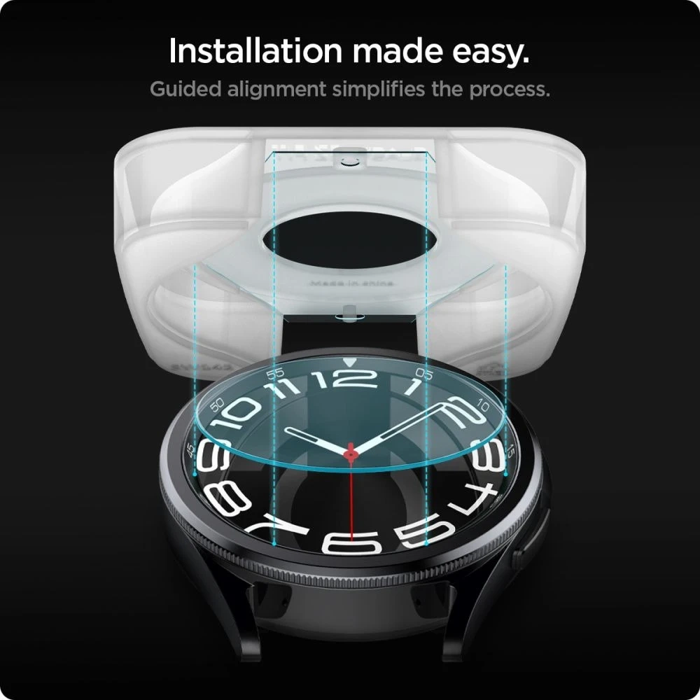 • Spigen Glas.tr ”EZ-Fit” 2-Pack tempered glass for Samsung Galaxy Watch 6 Classic (43 mm) Clear is designed specifically to protect the screen against scratches and minimizes the risk of screen damage in the event of an unexpected fall.