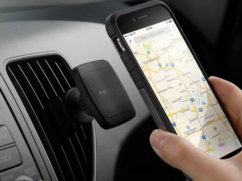 Spigen Kuel H12 is a high-quality magnetic holder designed to be mounted in the air/ventilation grille in our car. Thanks to the magnetic fastening, the holder is compatible with most mobile devices (it is enough to insert a metal plate between the device and the protective case, or glue the plate directly to the device, and even a large smartphone will hold firmly and stably).