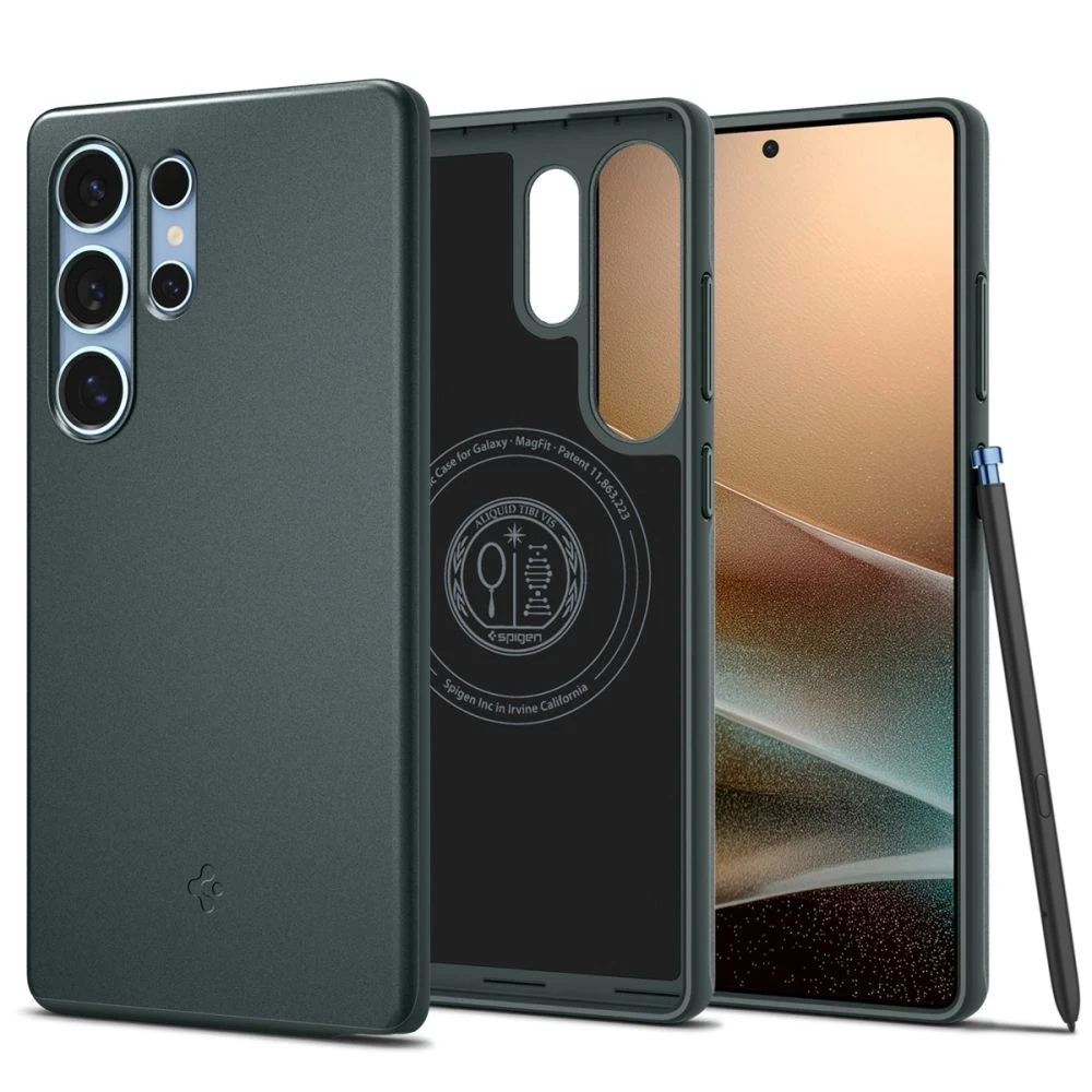 Light and ultra thin (1.55mm) protective case Thin Fit Magsafe by Spigen. Made of TPU and durable, slightly flexible polycarbonate, which provides reliable protection for your device and improves its grip in the hand. The product is perfectly fitted, fully functional, does not restrict access to external ports and effectively protects the phone against scratches or minor falls.