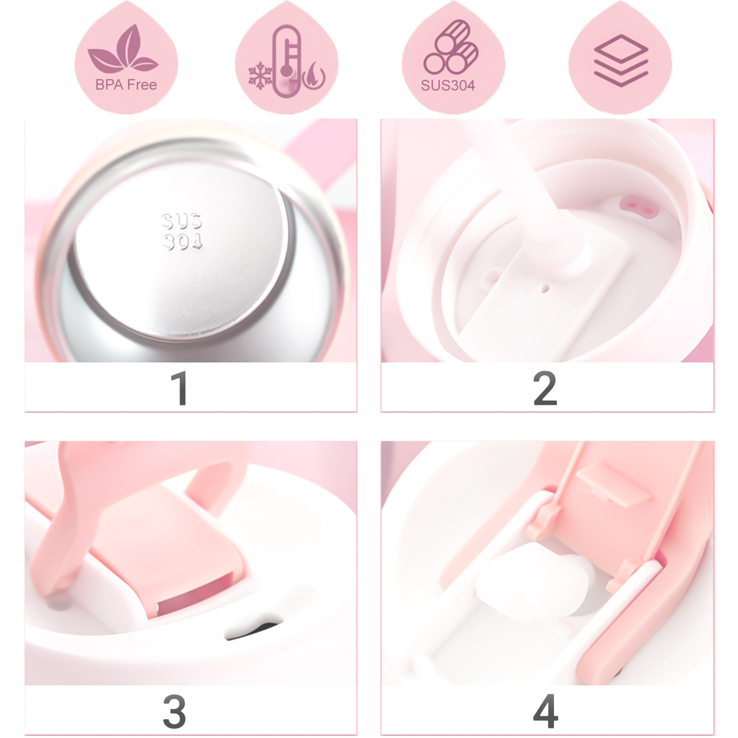 4. Straw cover - the flexible silicone straw not only ensures practical and comfortable drinking, but also guarantees health safety, being completely BPA-free.