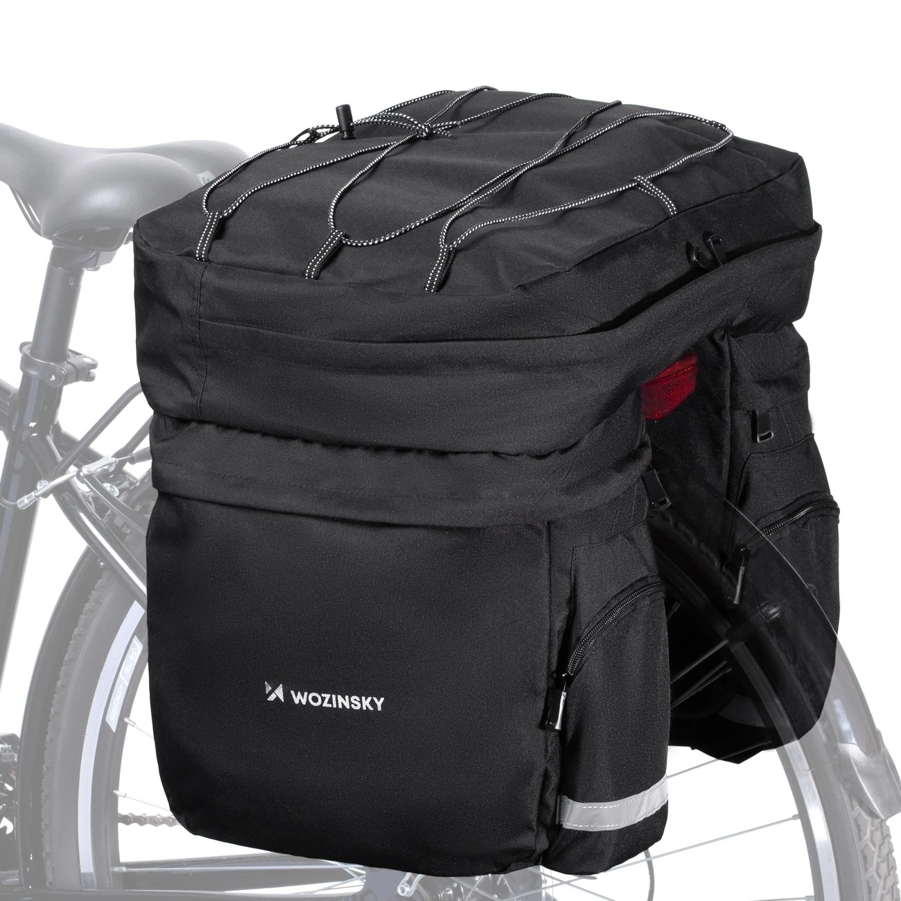 Are you planning a further cycling trip? Forget about packing a big backpack - the bike rack bag with a rain cover has a capacity of up to 60 liters . Packing for a round trip will no longer be a problem for you. You can take a change of clothes, drinks, snacks and more in the capacious Wozinsky WBB13BK trunk pannier . The bag is made of waterproof material . It also has a stable mount , thanks to which it optimally protects your items against shocks and weather conditions .