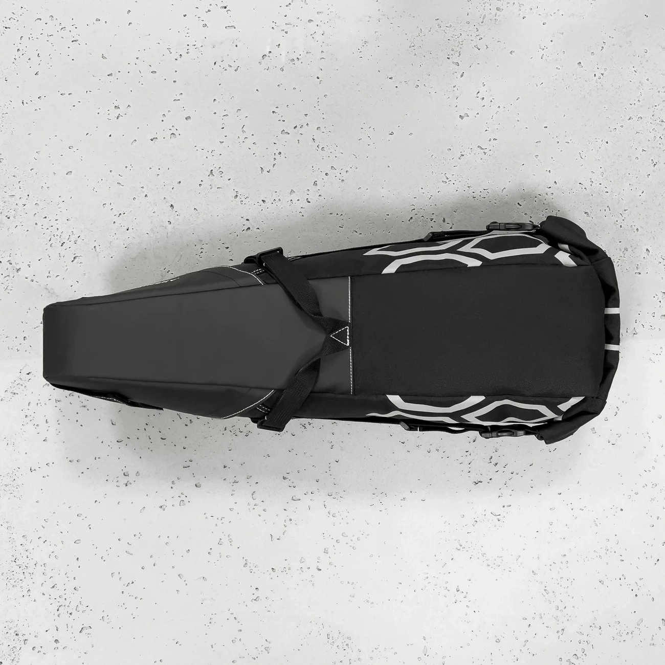 12 liters - this is the capacity of the Wozinsky WBB9BK saddle bag . So inside you can fit a lot of things: a change of clothes, a wallet, keys, a pump or a spare tire . It weighs only 411 grams, which means that when empty, it does not affect the load on the bike and your riding comfort . The saddle bag has a clever design that you can adjust to your needs . Want to pack less stuff? The front of the bag can be conveniently rolled up and secured. Want to pack more stuff? The bag is easy to unfold, reaching a maximum size of 65 cm x 15.5 cm x 14 cm.