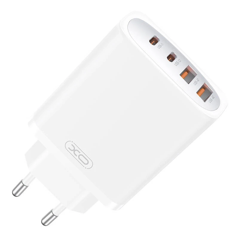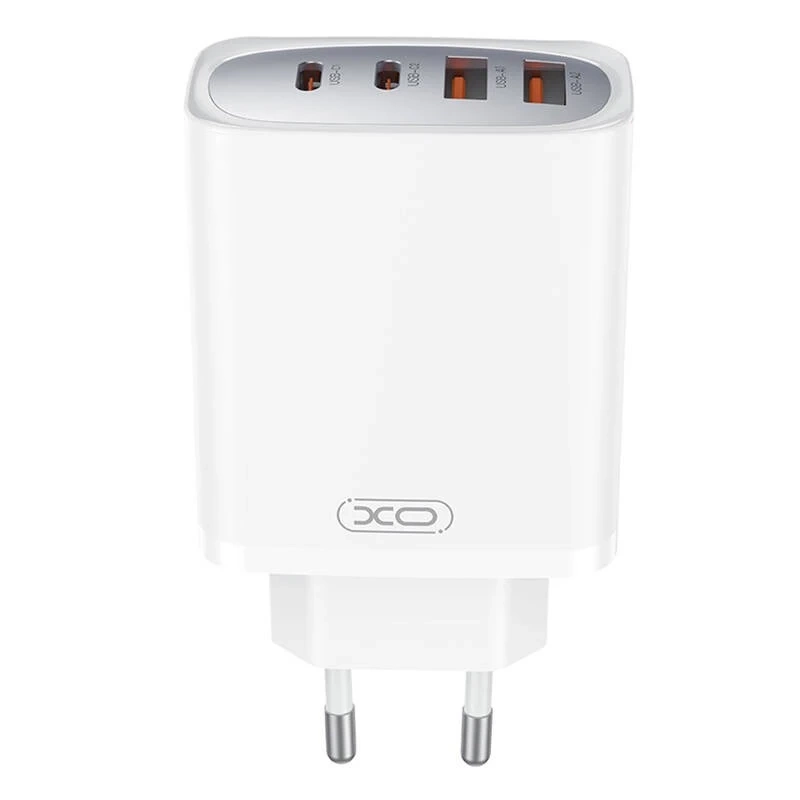 The XO CE22 45W wall charger enables fast charging of various mobile devices. Thanks to GaN technology, it provides high energy efficiency while maintaining a compact design. It is equipped with four ports (2x USB-C and 2x USB-A), which allow you to charge up to four devices at the same time. It also supports numerous fast charging protocols such as PD3.0, QC3.0 and PPS, ensuring compatibility with smartphones, tablets and laptops.