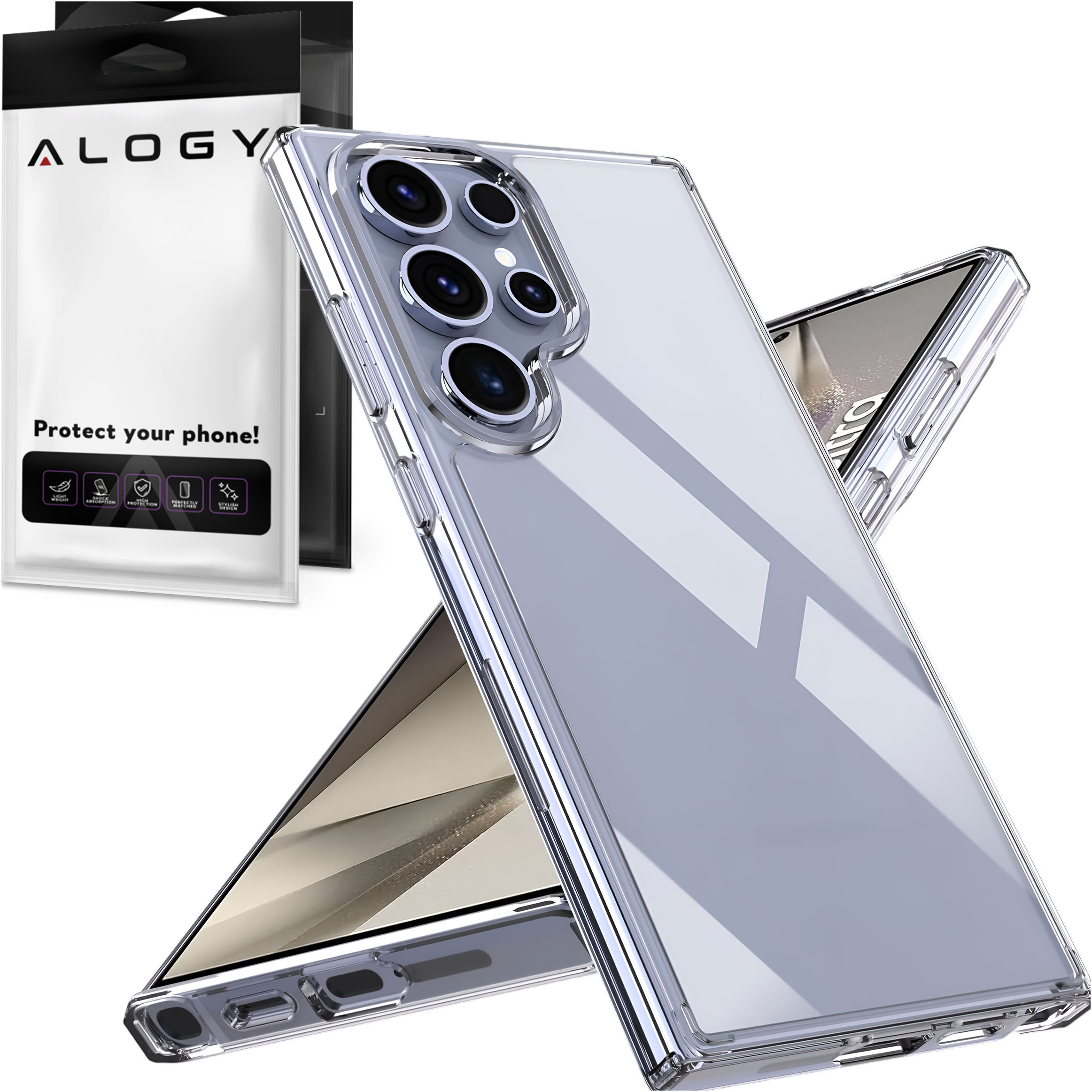 Etui Alogy Hybrid Case dedykowane dla Samsung Galaxy S24 Ultra to solidna ochrona najwyższej jakości, gdzie tył został wykonany z wytrzymałego poliwęglanu (PC), a boki z elastycznego poliuretanu (TPU).